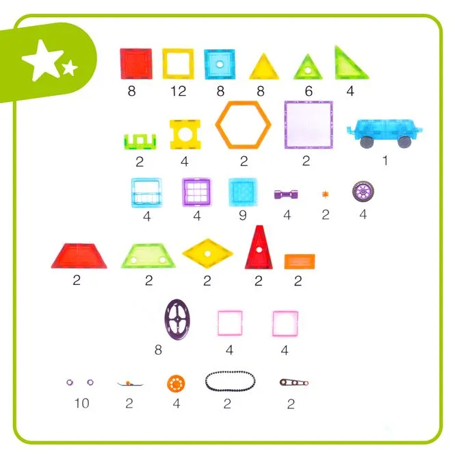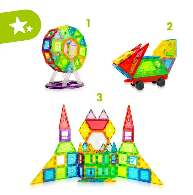- Mocne, trwałe magnesy – stabilne budowle, łatwe łączenie nawet dla maluchów.