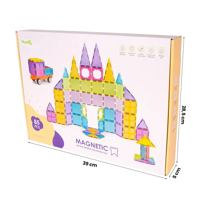 KLOCKI MAGNETYCZNE EDUKACYJNE UKŁADANKA DLA DZIECI ZESTAW 85 ELEMENTÓW 3D