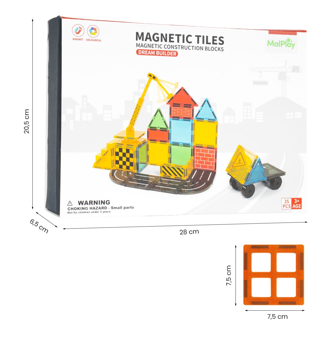 KLOCKI MAGNETYCZNE KONSTRUKCYJNE EDUKACYJNE ZESTAW KAFELKI ZABAWA 35 el.