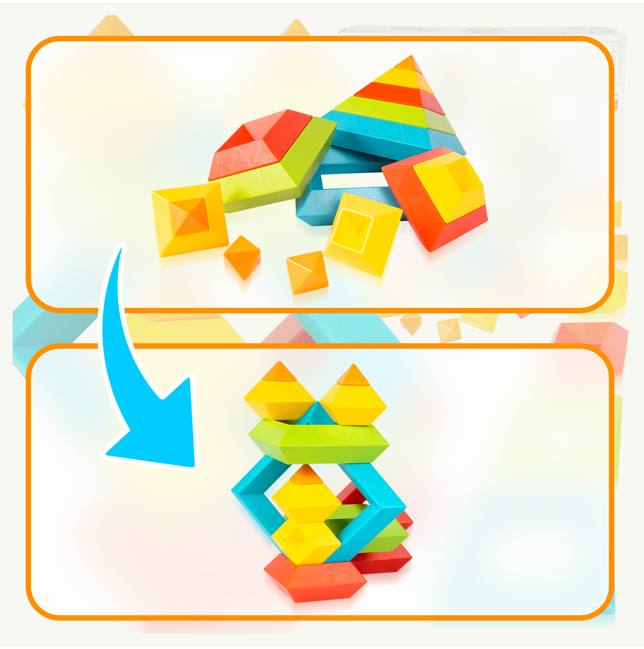 - 3 poziomy trudności: od prostych form po bardziej złożone konstrukcje