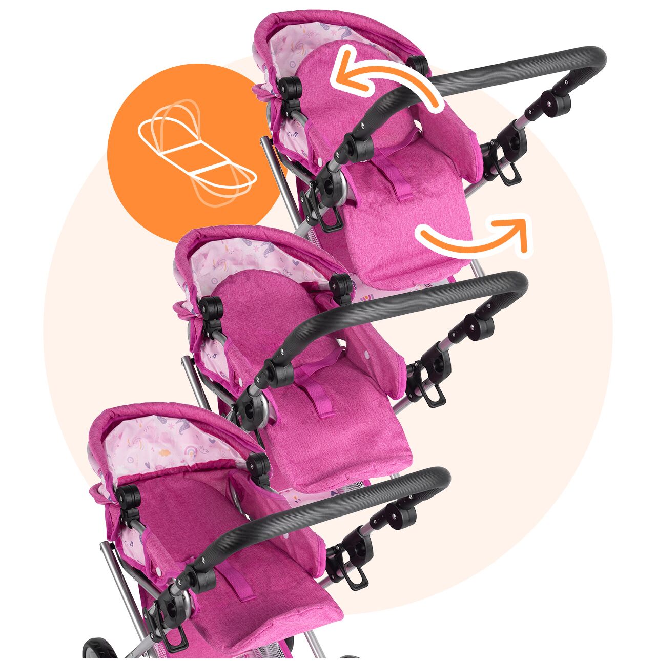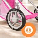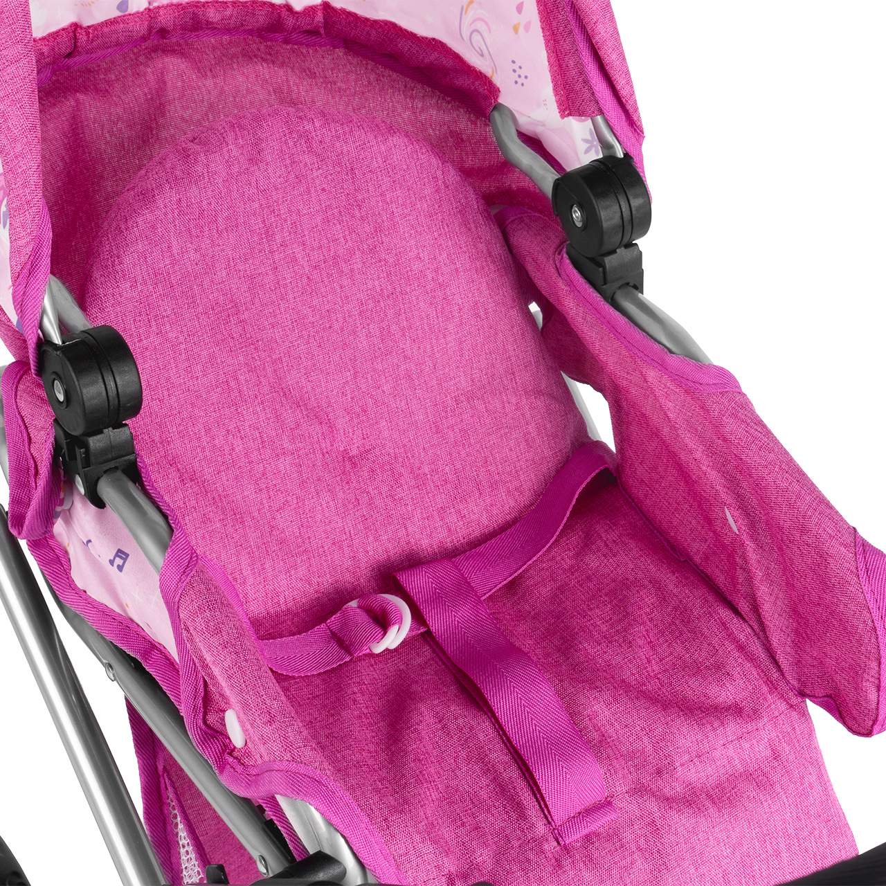 - Nastavitelná opěrka zad: umožňuje panence sedět vzpřímeně a obdivovat svět, nebo si lehnout, když je čas na zdřímnutí.