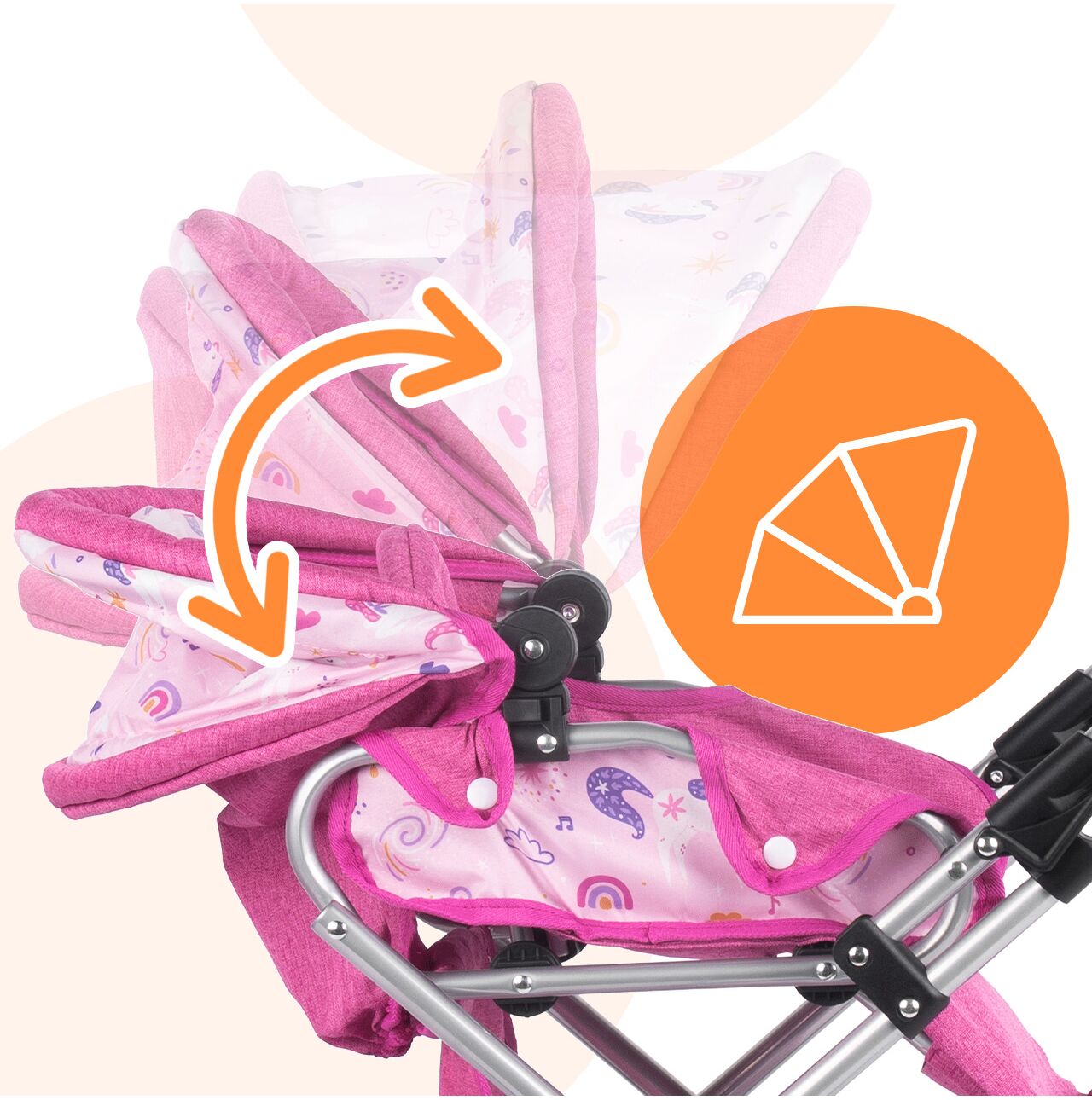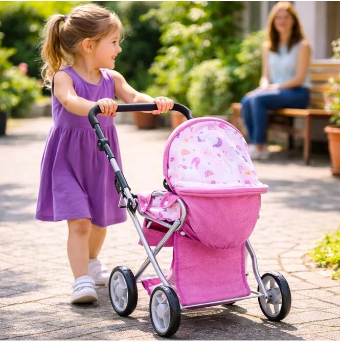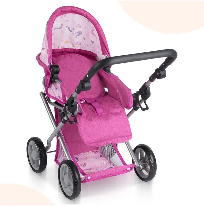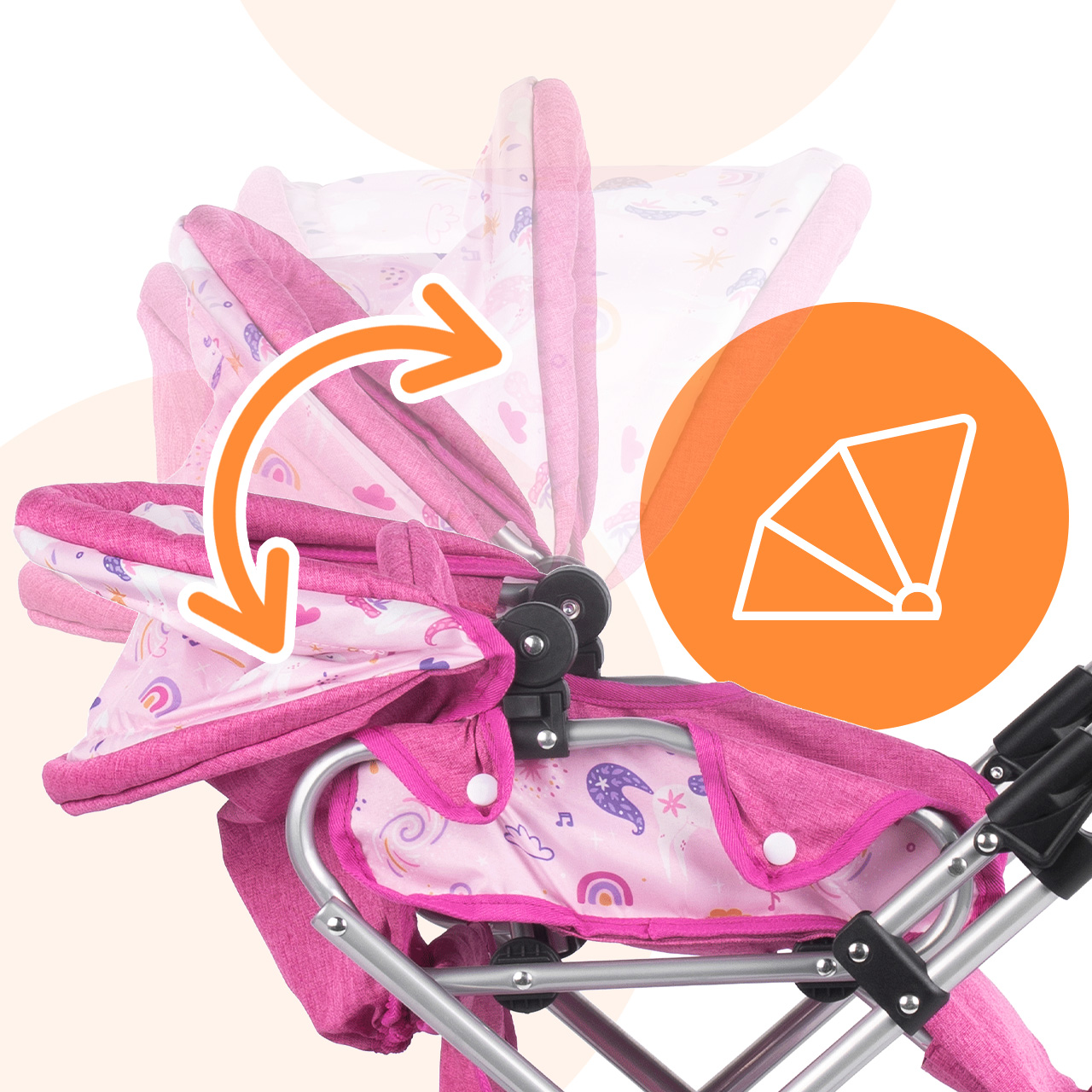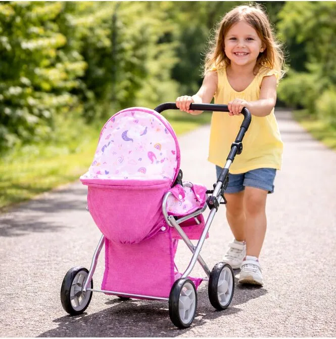 Stříška kočárku Unicorns lze nastavit do různých úhlů , což usnadňuje přizpůsobení hernímu prostředí: někdy chrání panenku během procházky, jindy je dále venku, když dítě potřebuje lepší přístup. Tento jednoduchý detail dodává hře nádech realismu a umožňuje plynulý přechod mezi zdřímnutím v gondole a aktivní procházkou.