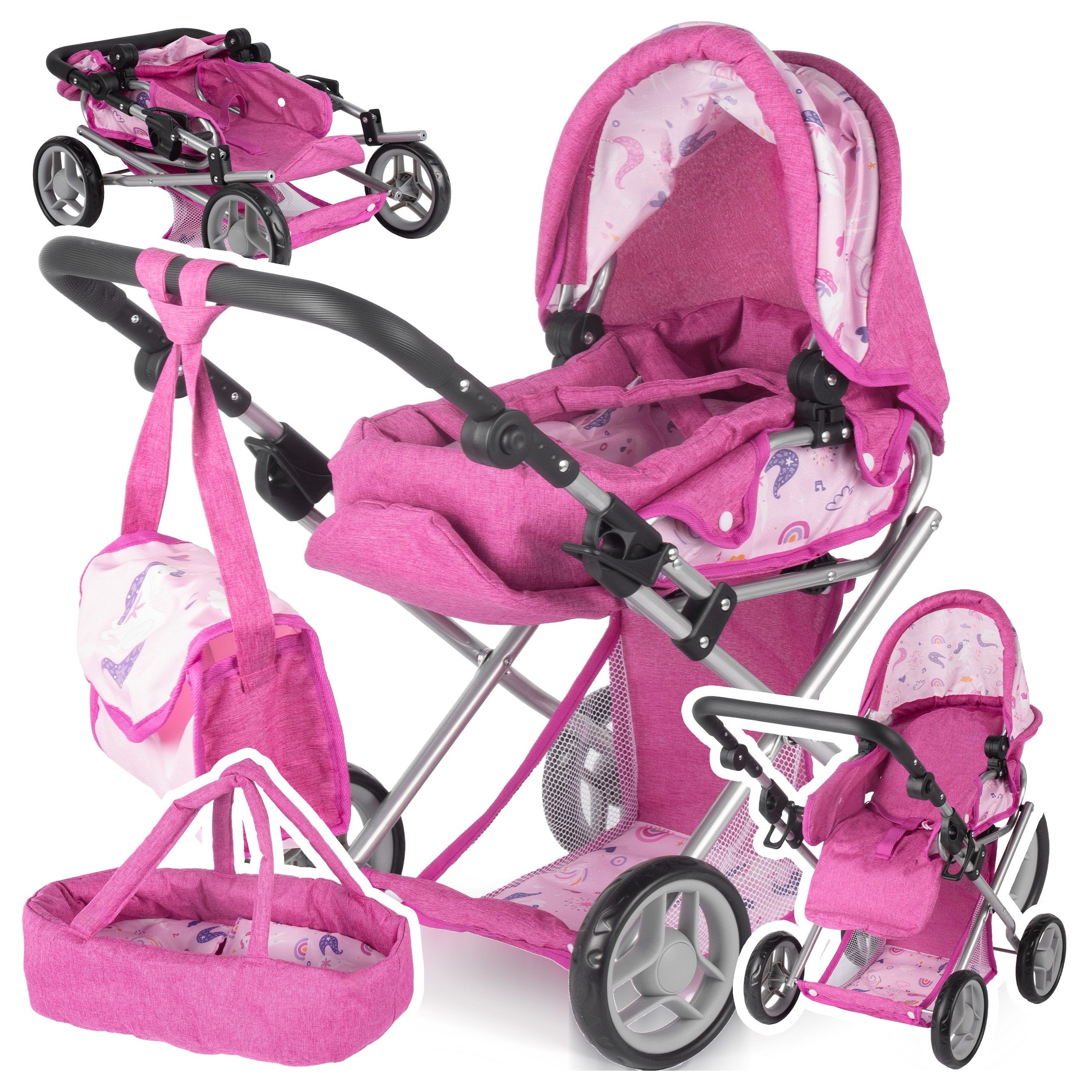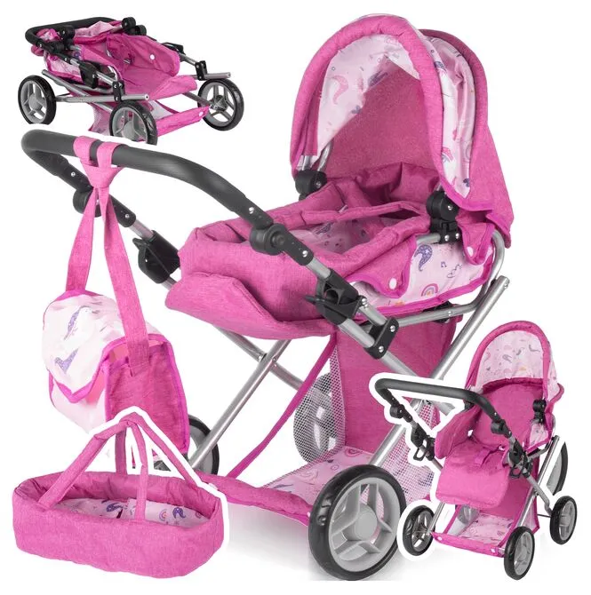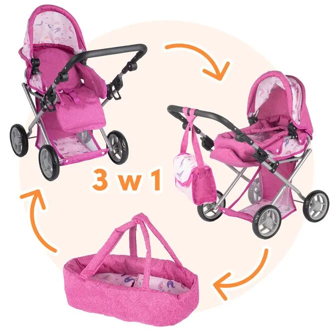 - Kočárek 3 v 1 pro panenky: gondola + kočárek + nosič