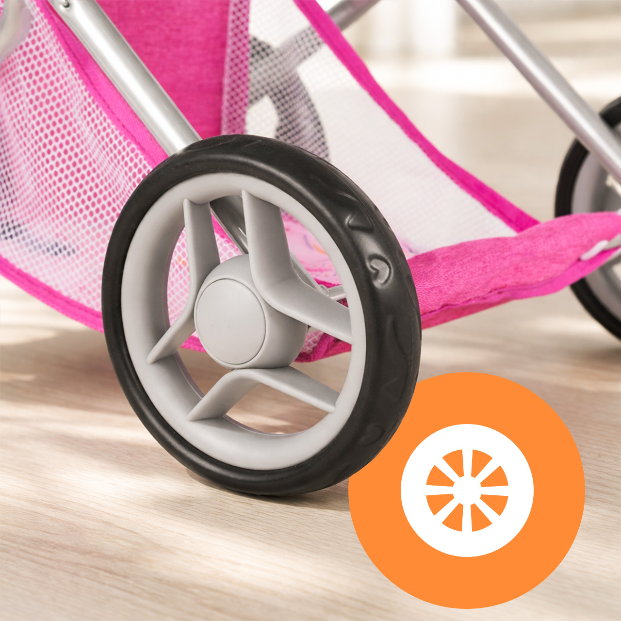 - Nastavitelná stříška : chrání panenku a umožňuje měnit polohu v závislosti na herní situaci