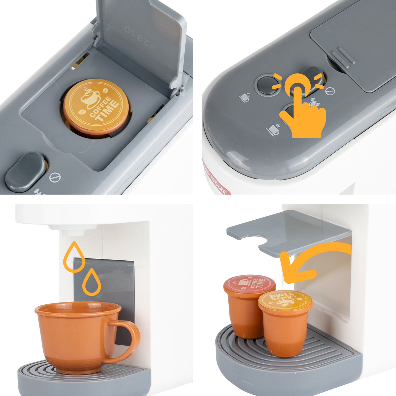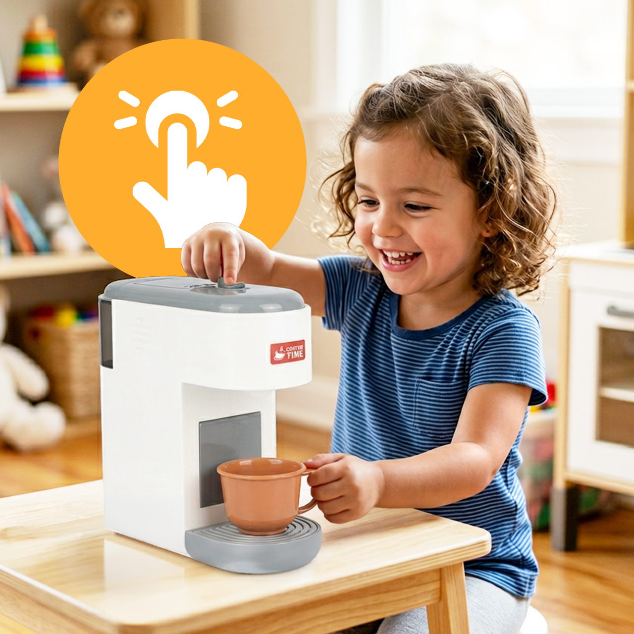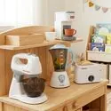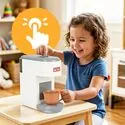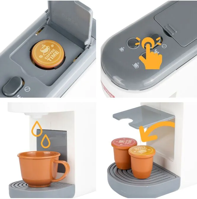 Tento kávovar umožňuje dětem stát se malými baristy. Sada obsahuje hrnky a kapsle , které jim umožní hravě servírovat kávu nebo jiné nápoje. Je to perfektní doplněk do dětské kuchyňky a skvělý základ pro kreativní tematické hry.