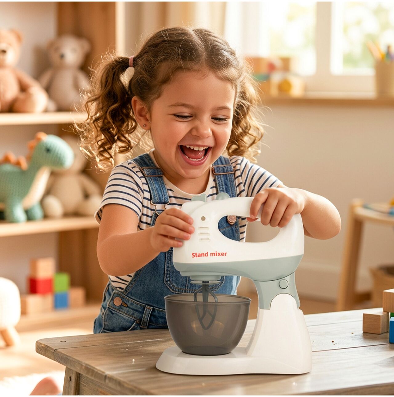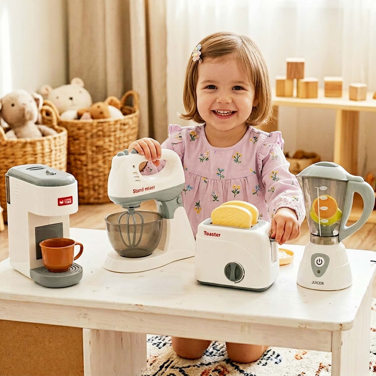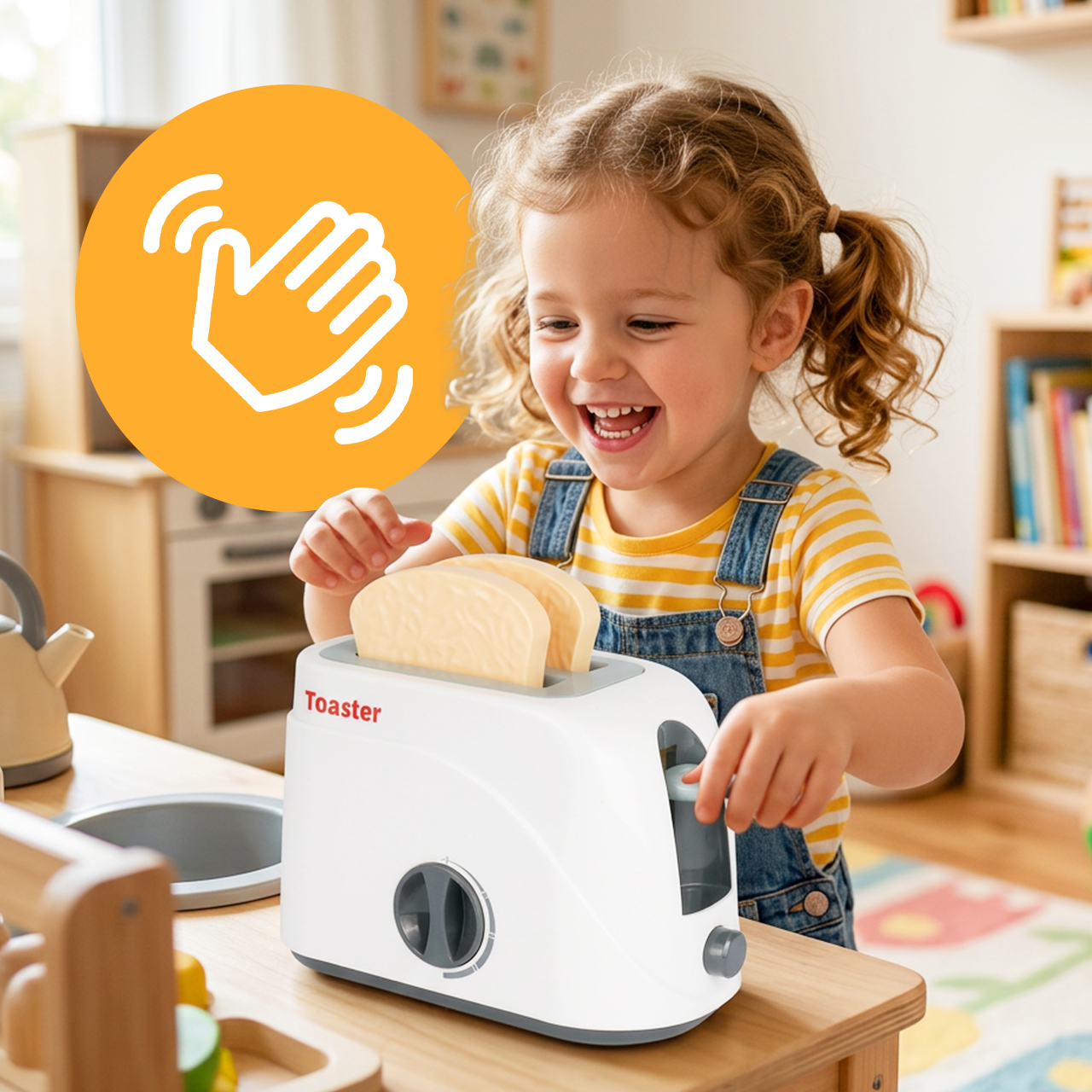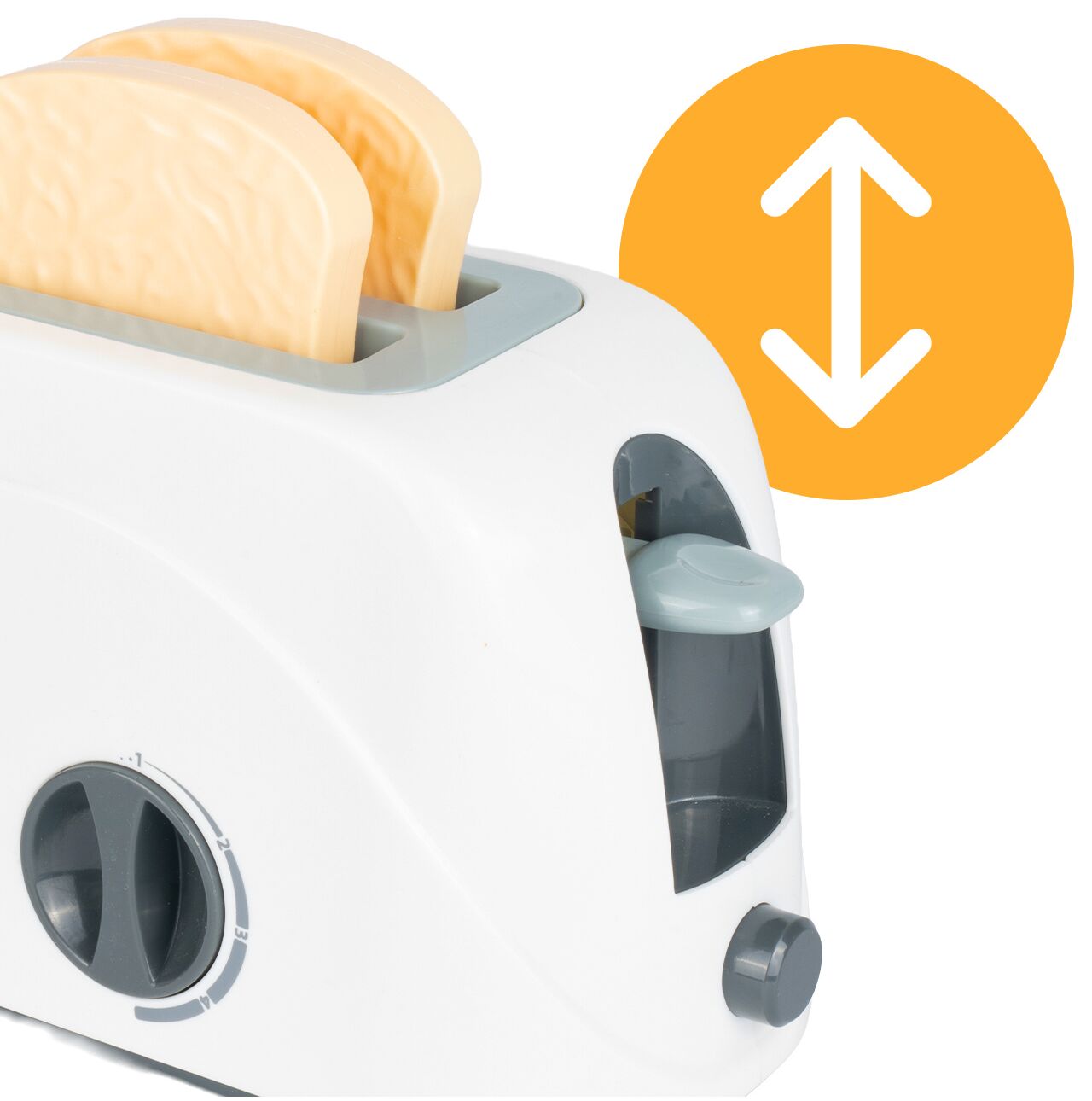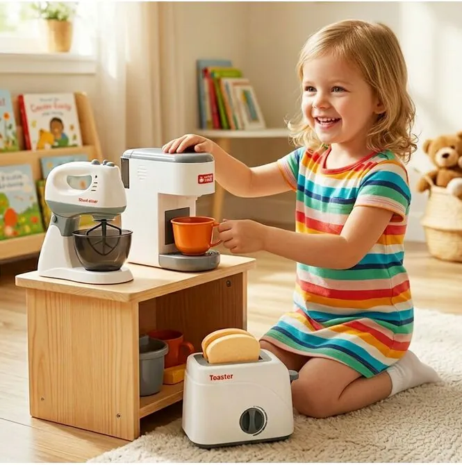 Hračka obsahuje toustovač s knoflíkem a pákou , které dětem umožňují vkládat krajíce chleba a předstírat, že připravují snídani. Tento prvek je velmi poutavý, připomíná skutečný kuchyňský spotřebič a povzbuzuje k hraní rolí na každodenní scény z domova.