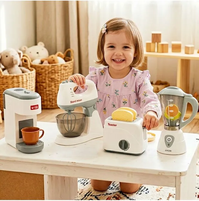 - Realistické funkce a atraktivní vzhled – zařízení připomínají skutečné domácí spotřebiče, takže si děti s radostí zahrají každodenní situace