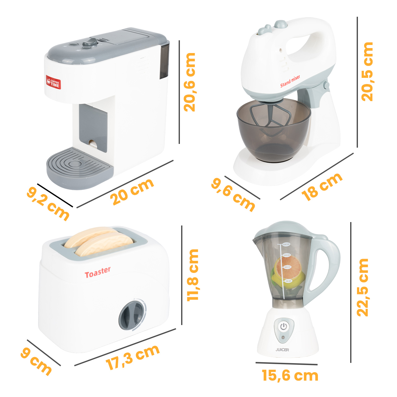 - 4 zařízení v 1 sadě – kávovar, toustovač, mixér a mixér pro ještě více zábavy