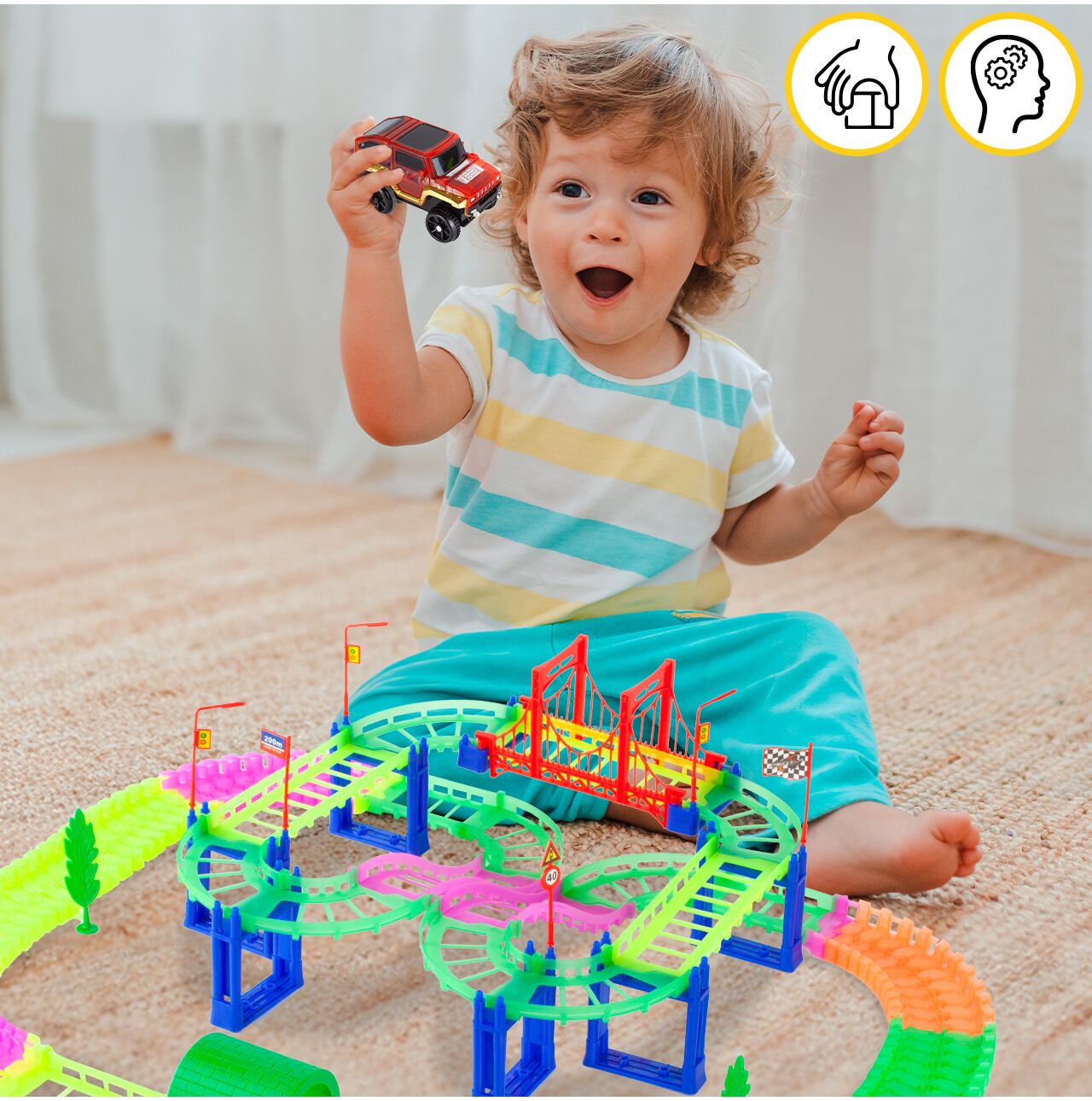 Die magische Rennstrecke ist ein farbenfrohes, im Dunkeln leuchtendes Spielzeug, das Ihr Kind nicht mehr weglegen möchte!