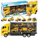 - 6 Fahrzeuge (Bagger, Walze, Gabelstapler, Betonmischer, Bulldozer und Muldenkipper)
