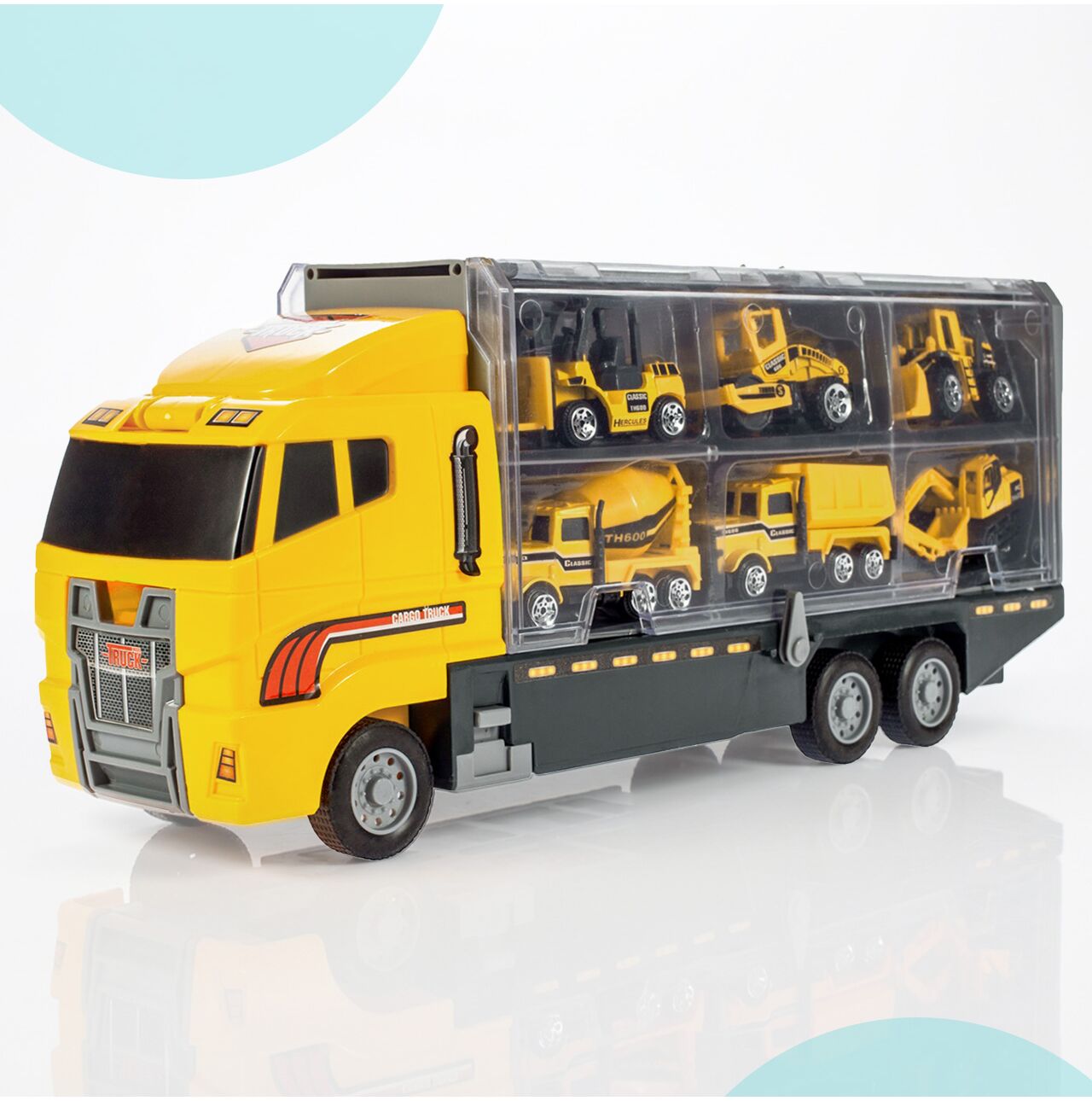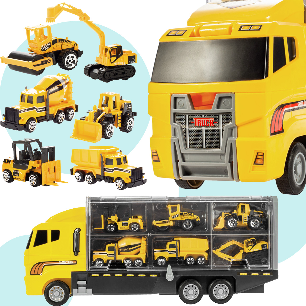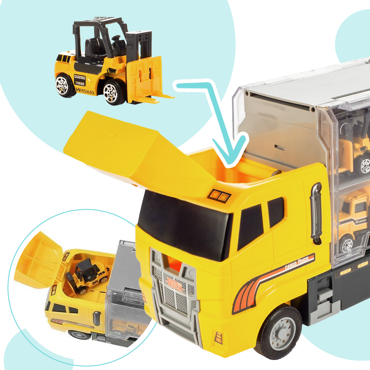 ✅ Ein großer LKW mit 6 Rädern für einfaches Fahren. Im Inneren befinden sich 6 Fächer zur übersichtlichen Aufbewahrung Ihrer Fahrzeugsammlung.