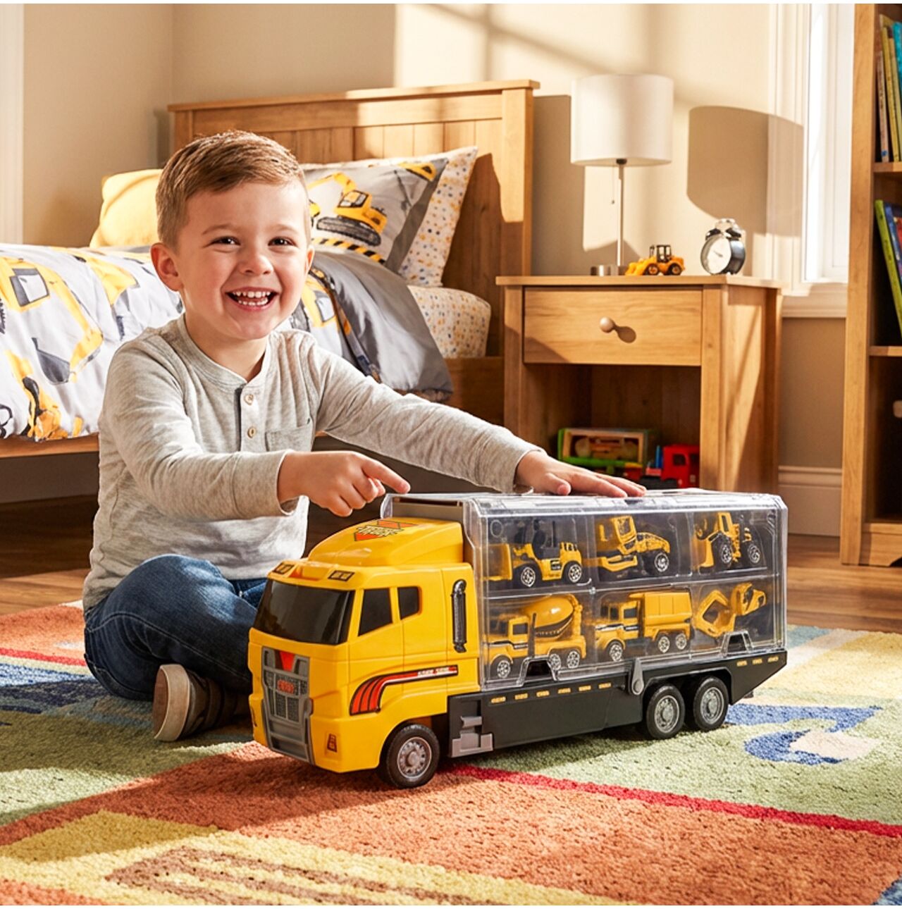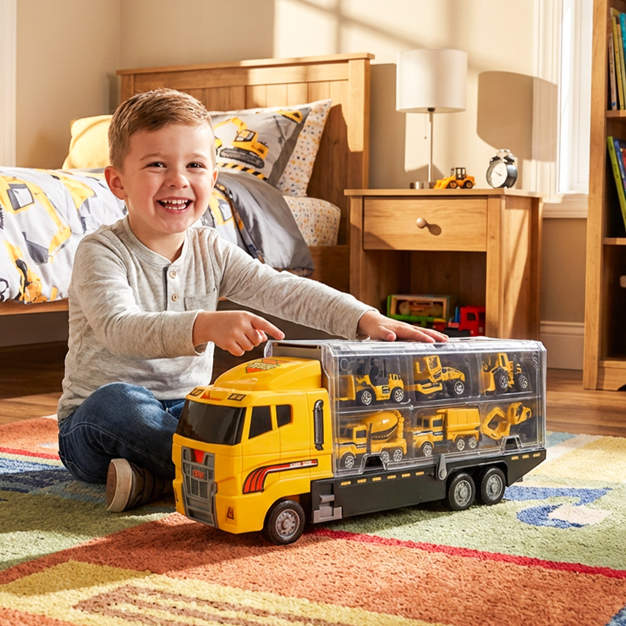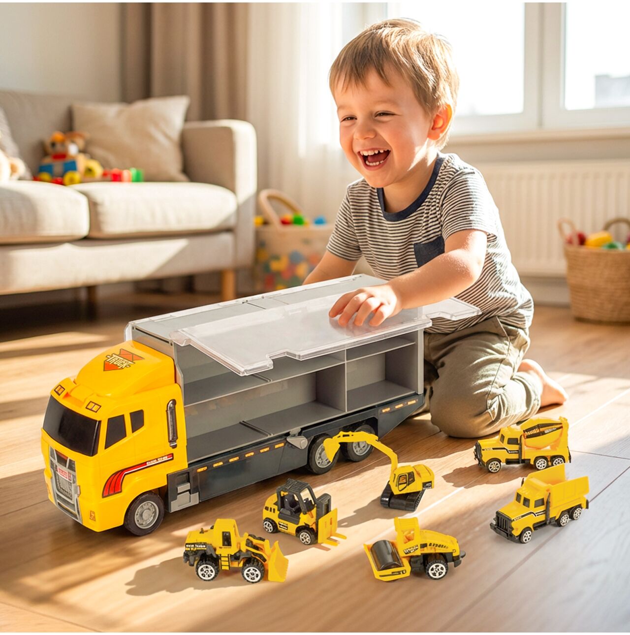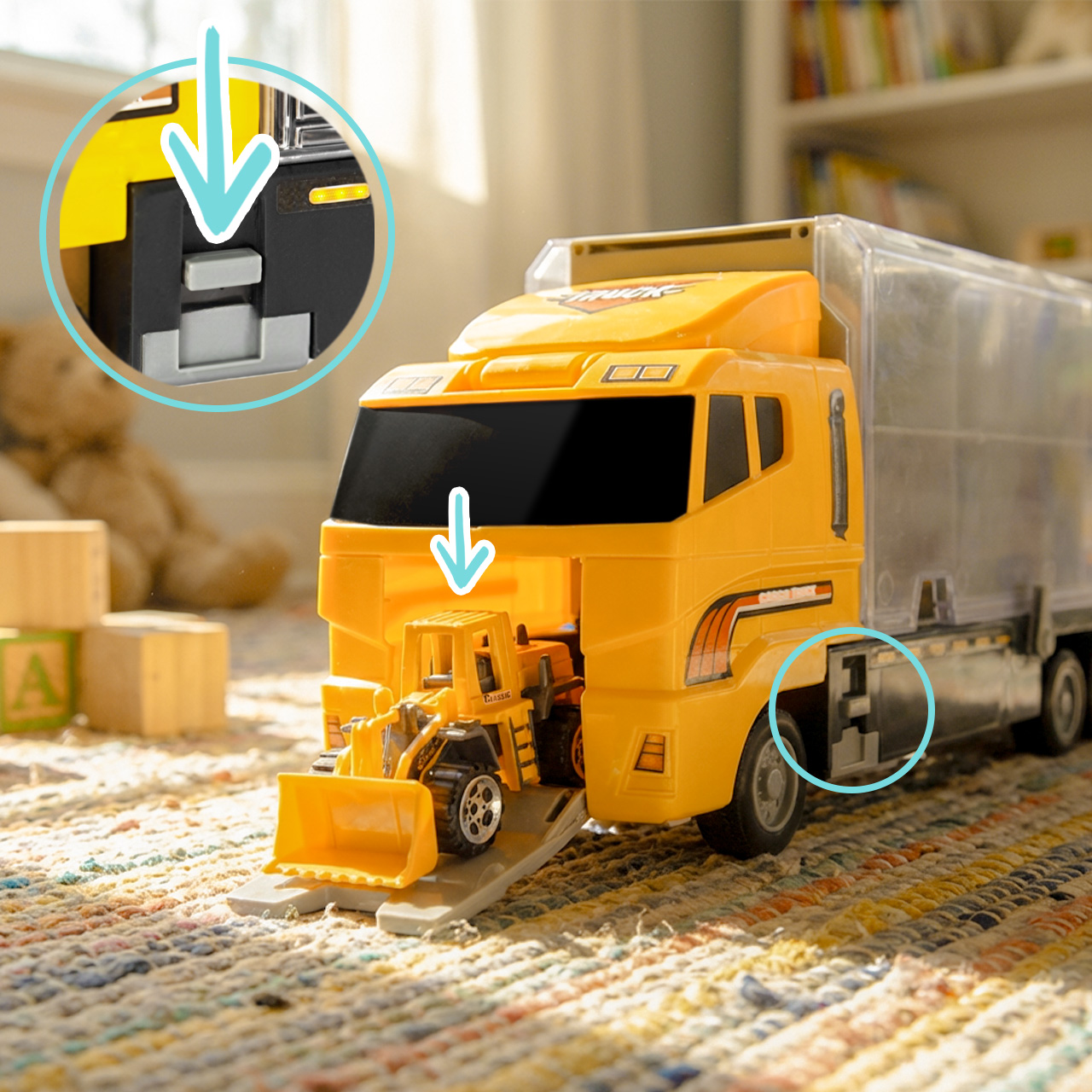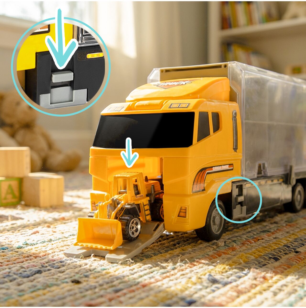✅ Oben auf dem LKW befindet sich ein zweites Staufach für Autos!