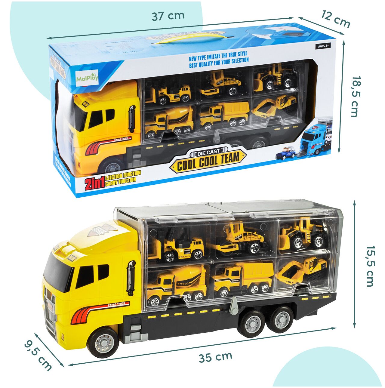 - LKW-Abmessungen: 35,0 x 9,5 x 15,5 cm