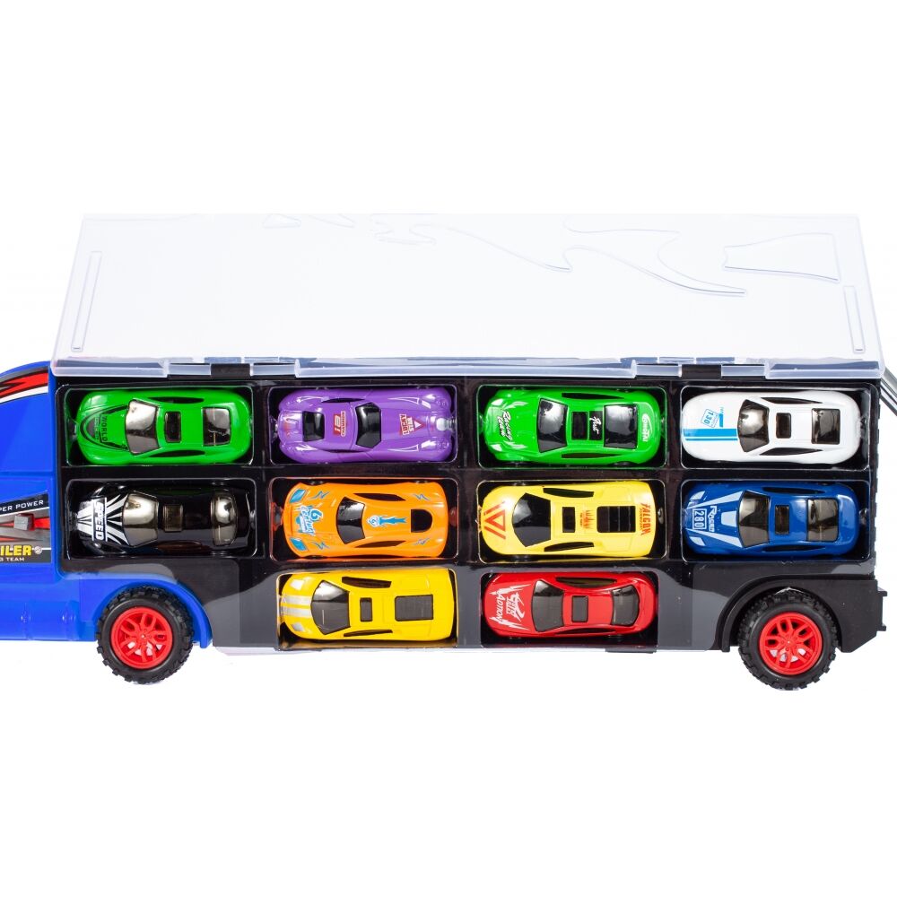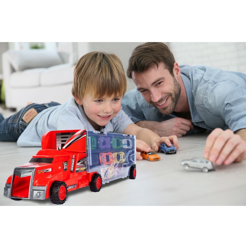Ein Spielzeug für junge Autobegeisterte, das viele Überraschungen bereithält! Wir sind sicher, dass der Truck mit Fächern für Federn ein wahrgewordener Traum für alle Fans und Sammler dieser Kleinwagen sein wird. Wichtig ist, dass auf der anderen Seite des Fahrzeugs 6 freie Plätze vorhanden sind, an denen das Kind seine aktuellen Sammlungen ablegen kann.