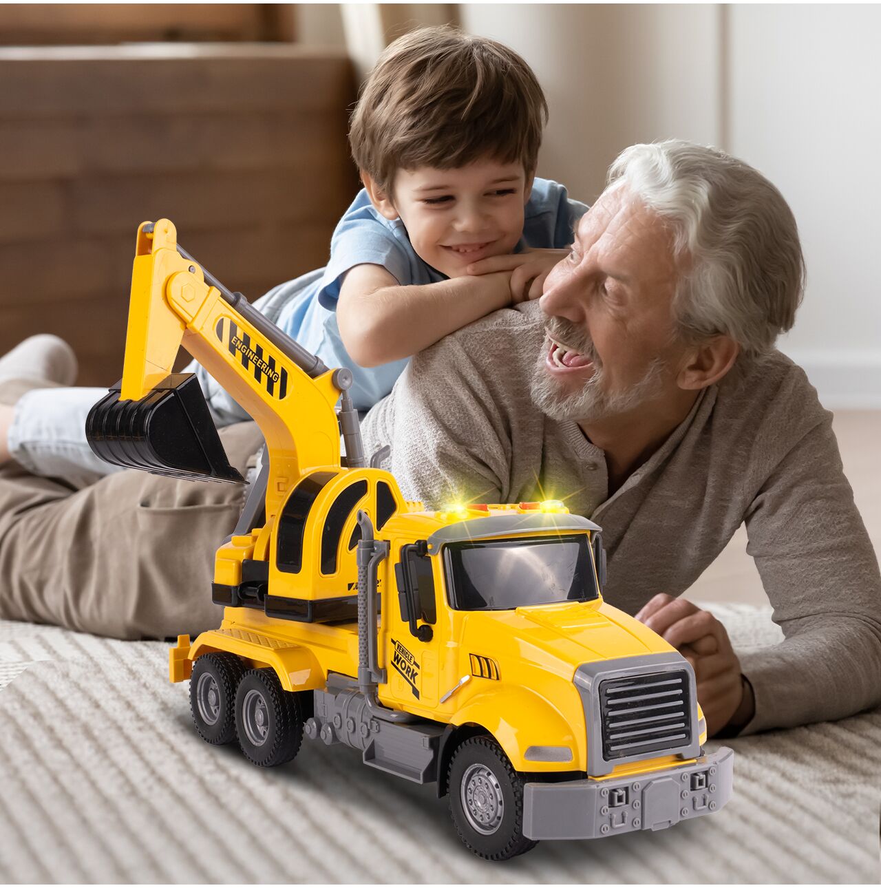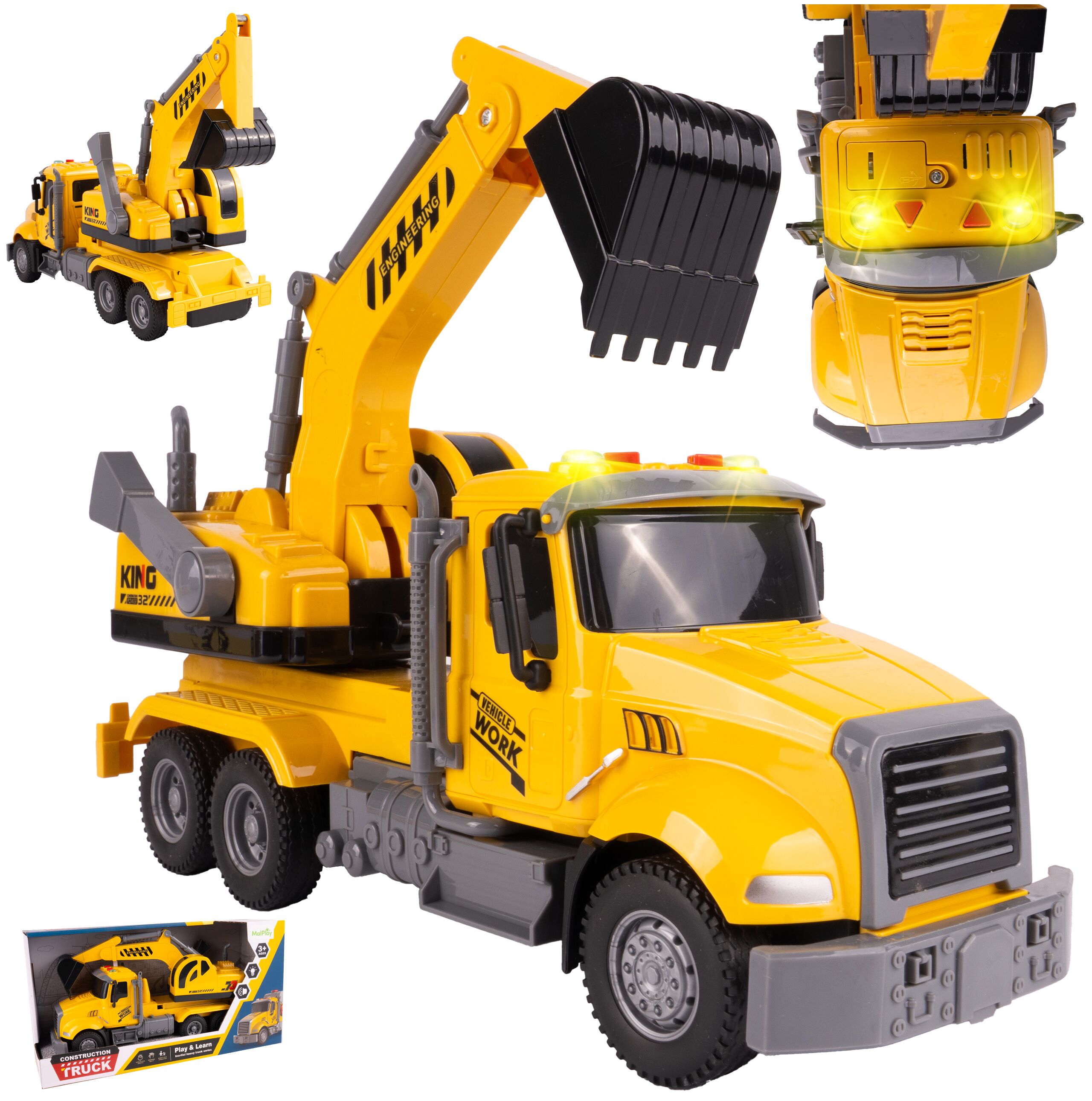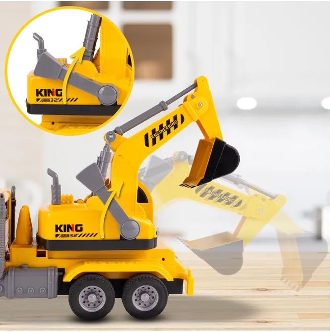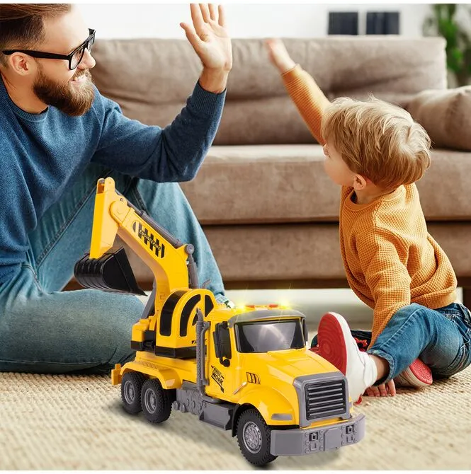 Toto veľké nákladné auto s bagrom je skutočnou lahôdkou pre každého malého fanúšika stavebných strojov. Bager má pohyblivé rameno, ktoré môže dieťa manuálne zdvíhať a spúšťať vďaka pohyblivej páke.