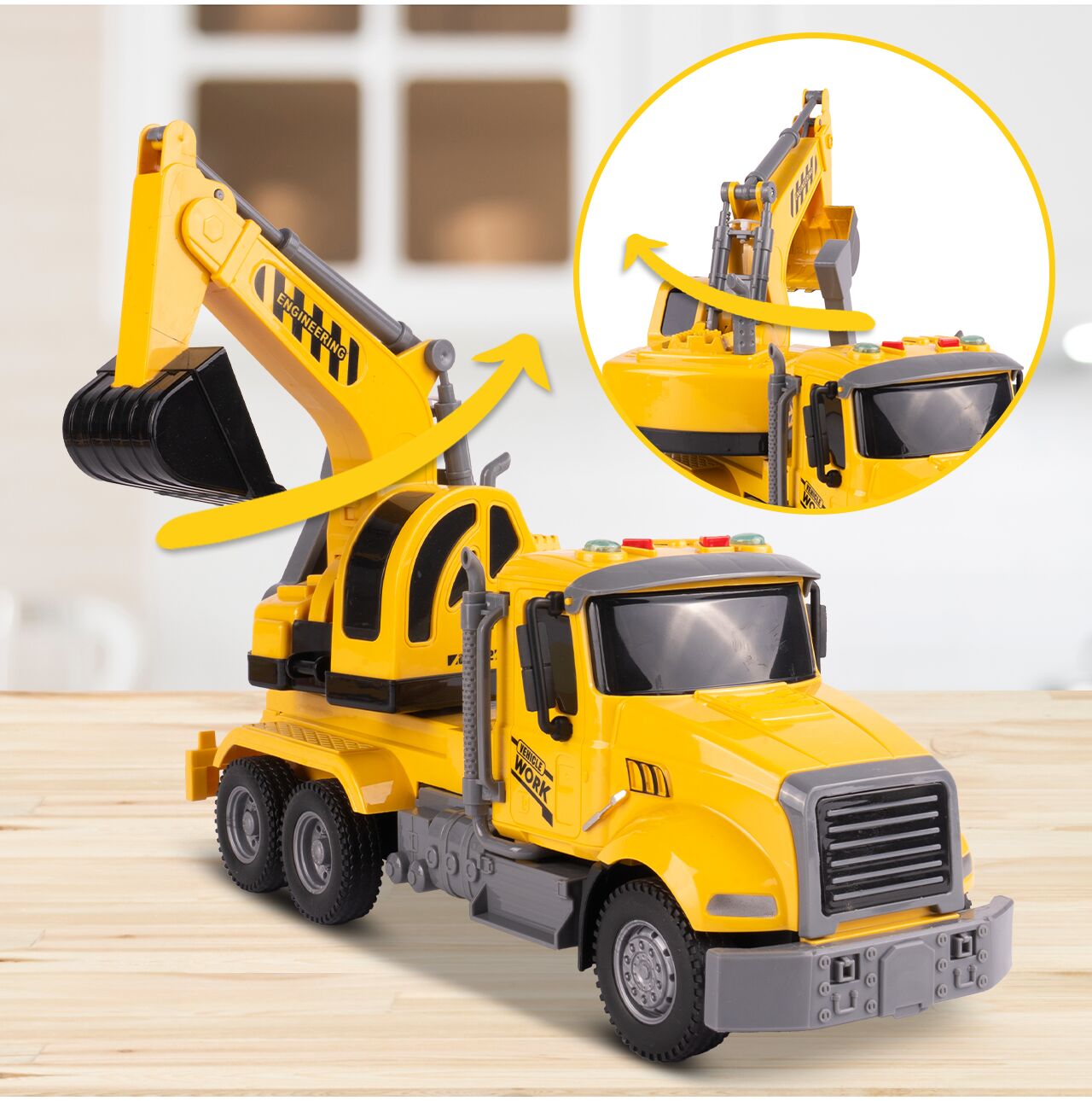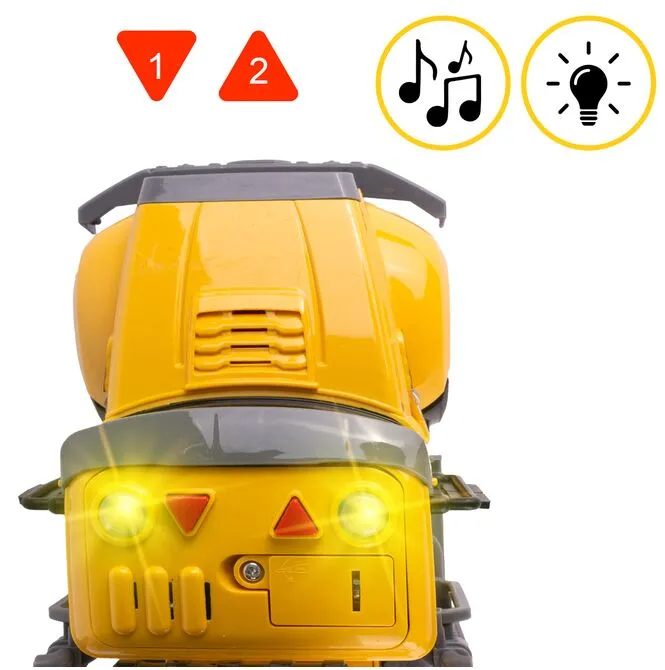Hračka je vybavená tlačidlami, ktoré aktivujú svetelné a zvukové efekty , ktoré napodobňujú zvuky pri prevádzke ťažkej techniky. Po stlačení tlačidiel sa rozsvietia LED svetlomety a na realizme pridávajú výrazné zvuky konštrukcie. Tieto funkcie ešte viac zapájajú dieťa do hry a prežívajú emócie spojené s prácou strojov.