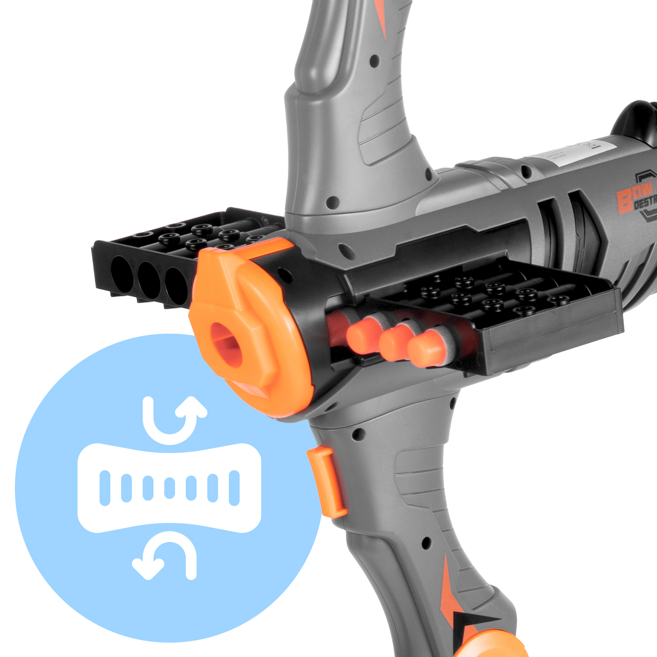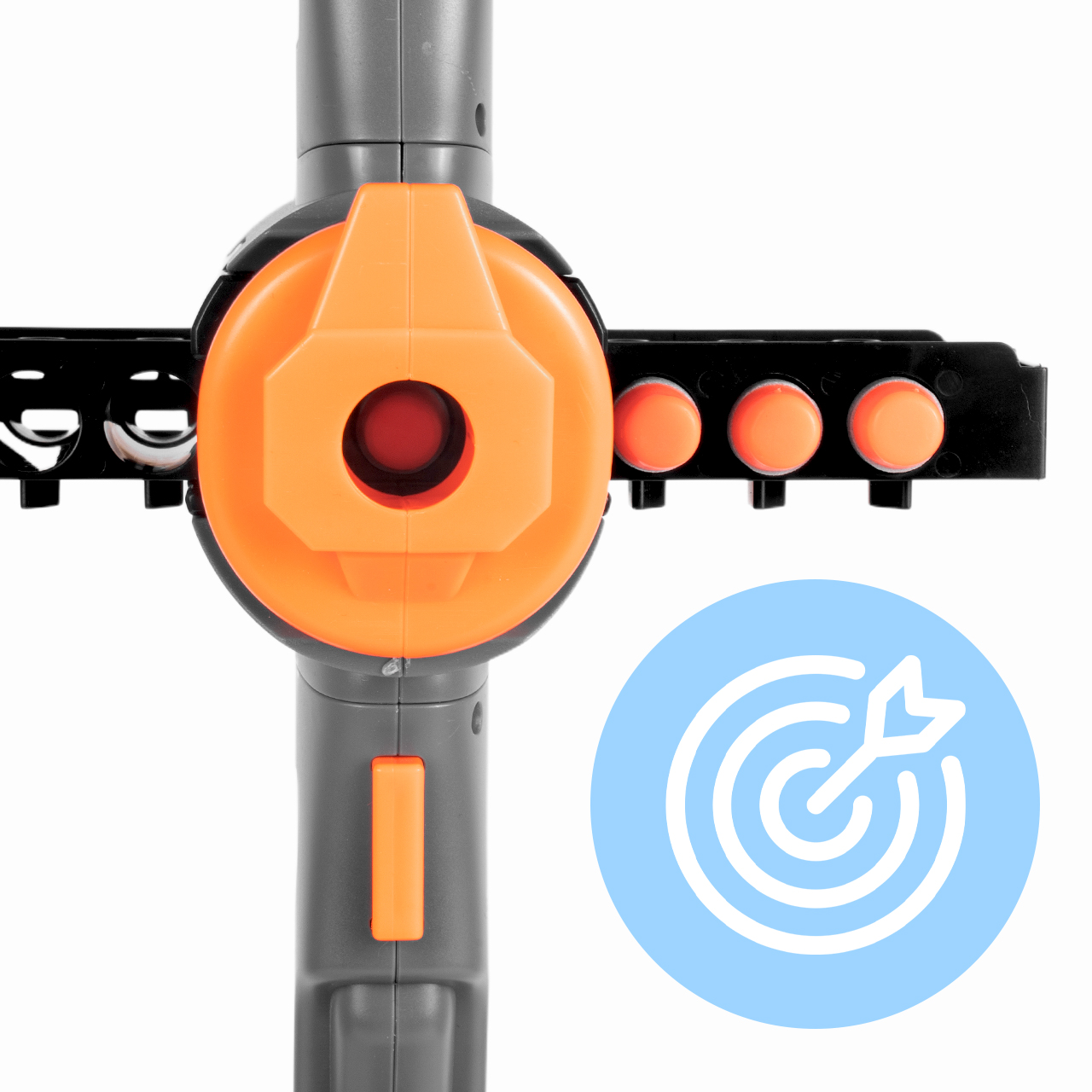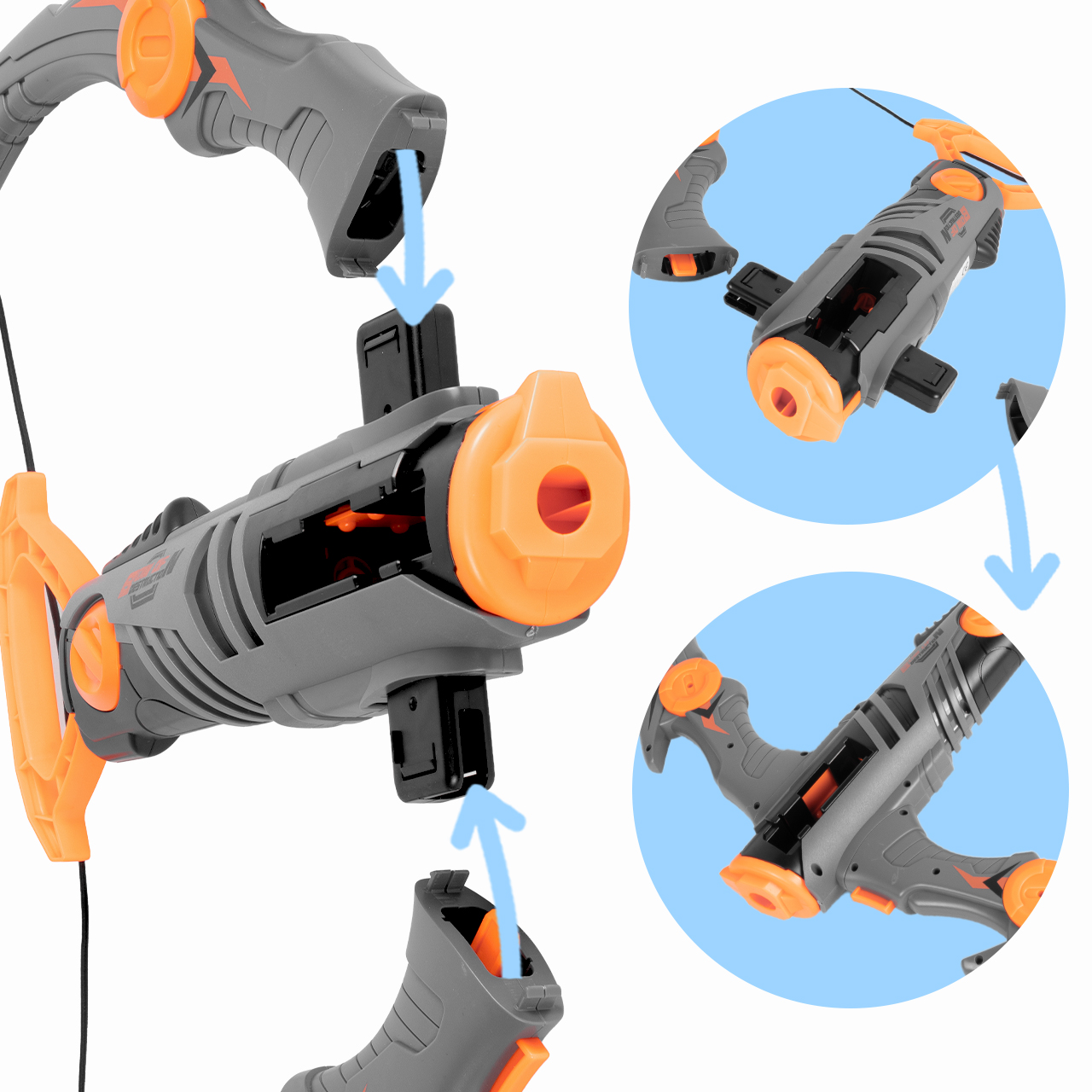 Hračka se snadno naučíte hrát: sestavíte komponenty kuše, vložíte šipky do zásobníku, nabijete rukojetí a vystřelíte . Díky dodávanému příslušenství si můžete začít hrát ihned – není třeba nic kupovat. Je skvělá pro samostatné hraní, se sourozenci nebo s partou přátel na zahradě.