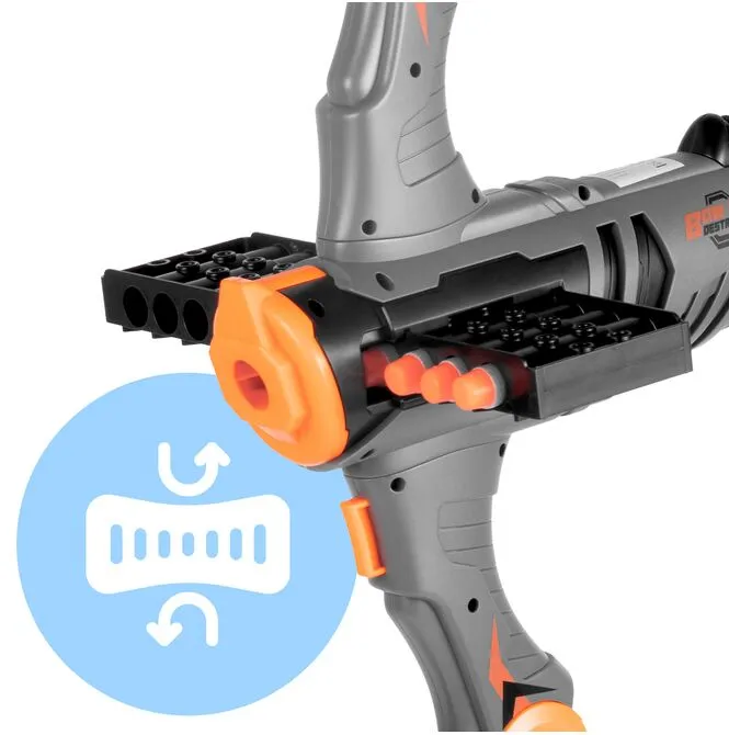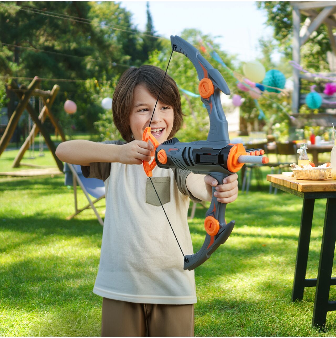 Hračka se snadno naučíte hrát: sestavíte komponenty kuše, vložíte šipky do zásobníku, nabijete rukojetí a vystřelíte . Díky dodávanému příslušenství si můžete začít hrát ihned – není třeba nic kupovat. Je skvělá pro samostatné hraní, se sourozenci nebo s partou přátel na zahradě.