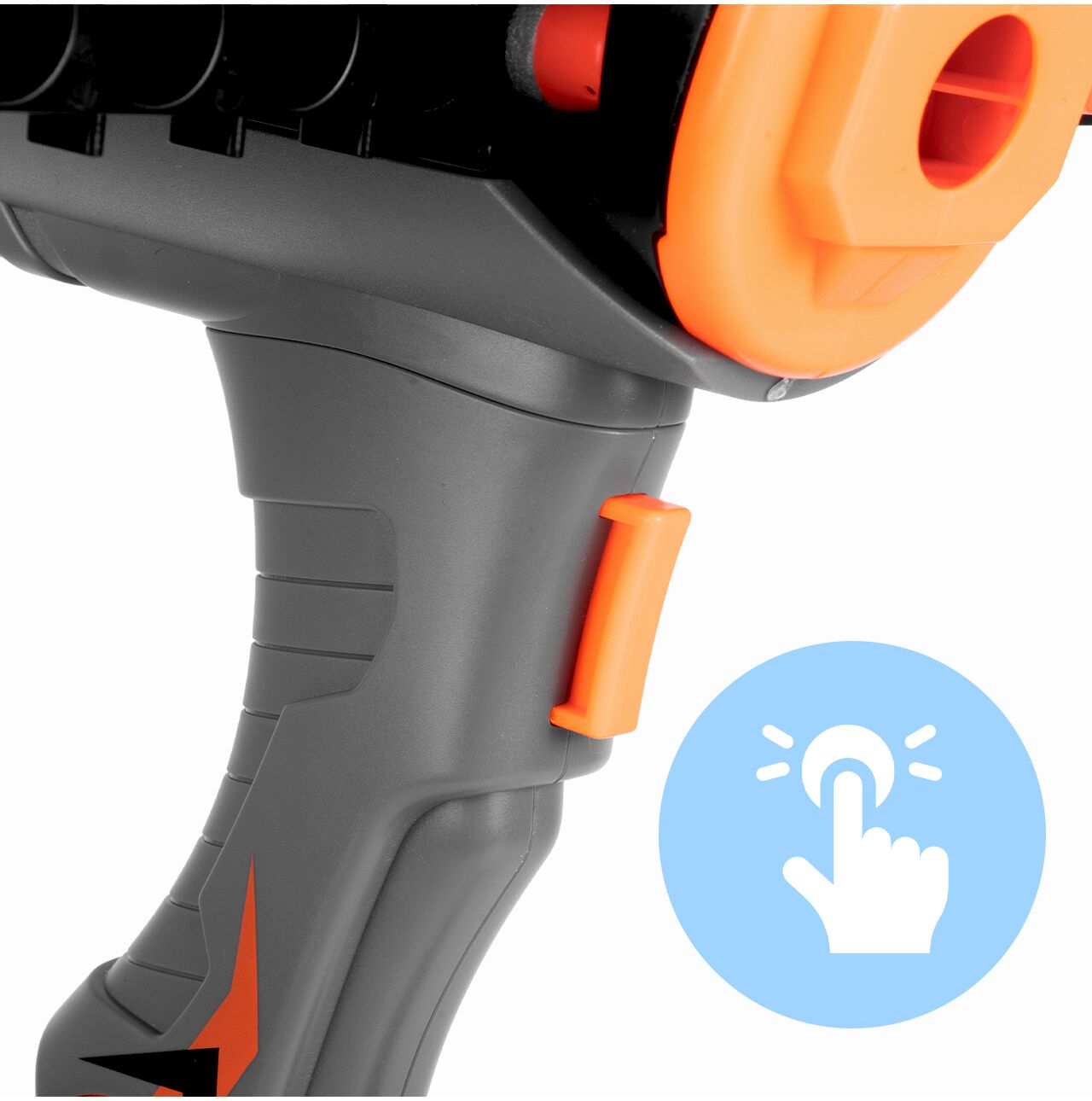 Neexistuje zde žádná atmosféra typu „střílej-pauza-najdi-šipku-nabij“. Zásobník umožňuje palbu dávkami , díky čemuž je hra plynulá a napínavější. Děti milují, když akce nekončí – a vy máte klid, protože je vše organizované a snadno se ovládá.