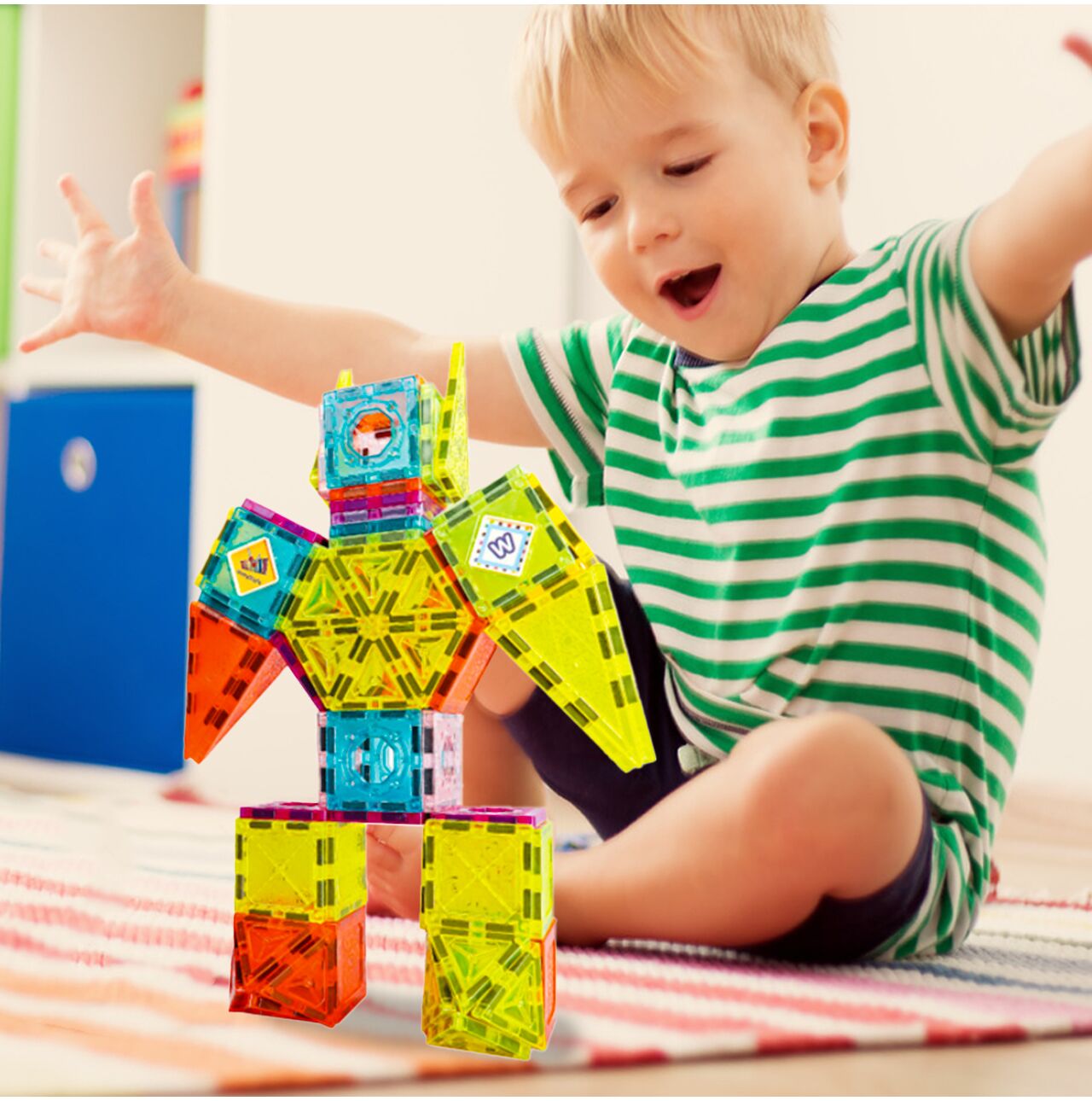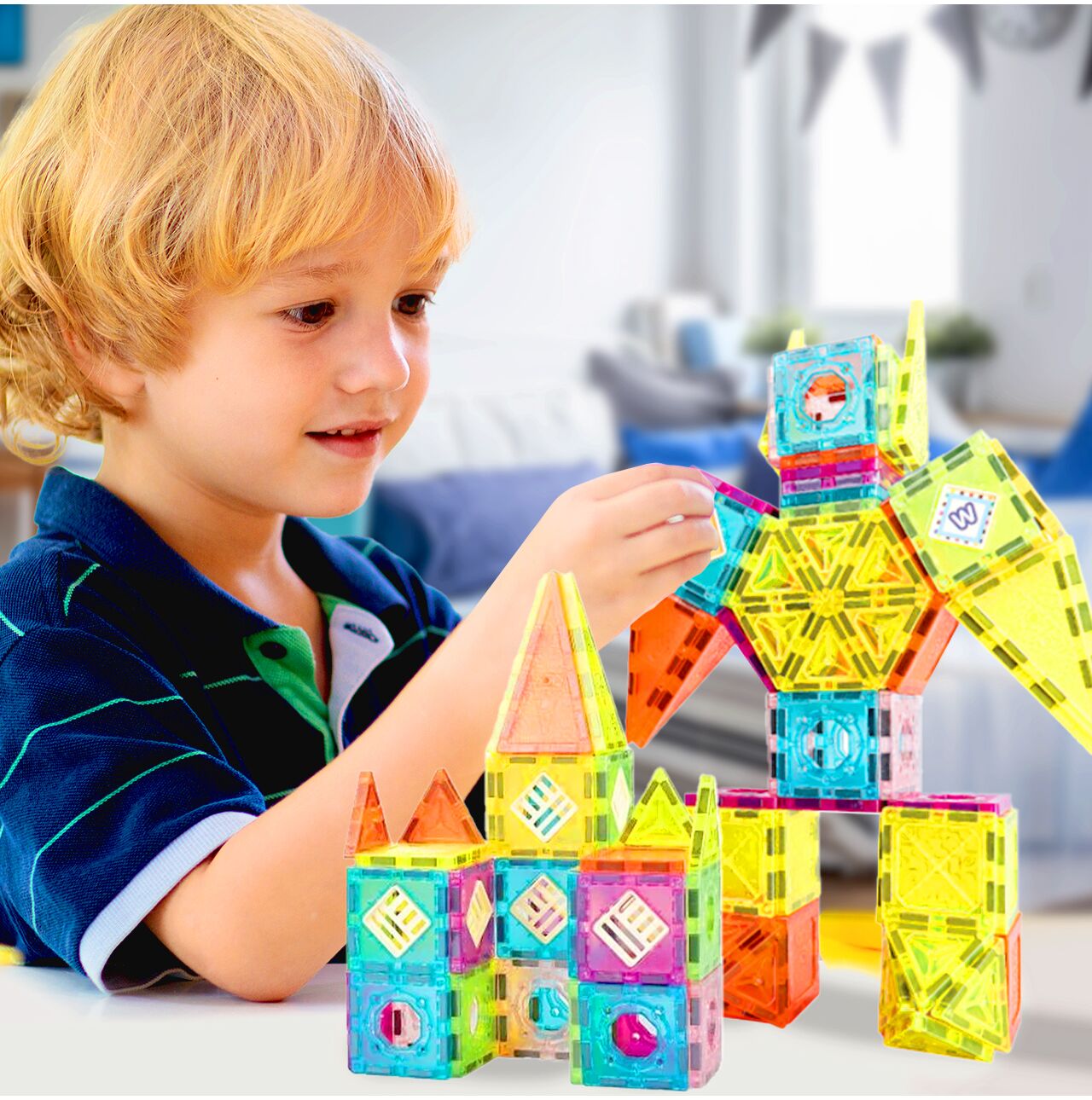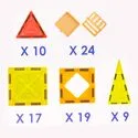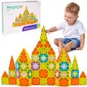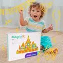 Sestavte ploché 2D mozaiky (ukazatele, písmena, čísla) nebo „zvedejte“ stěny a střechy a vytvářejte 3D tvary: roboty, hrady, věže, vozidla. Silné magnety drží dílky v různých úhlech a zajišťují tak stabilitu konstrukcí.