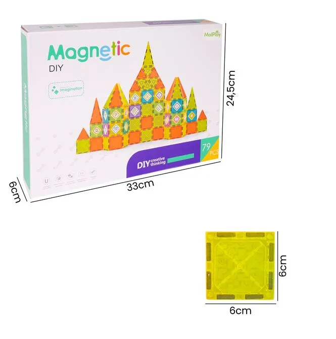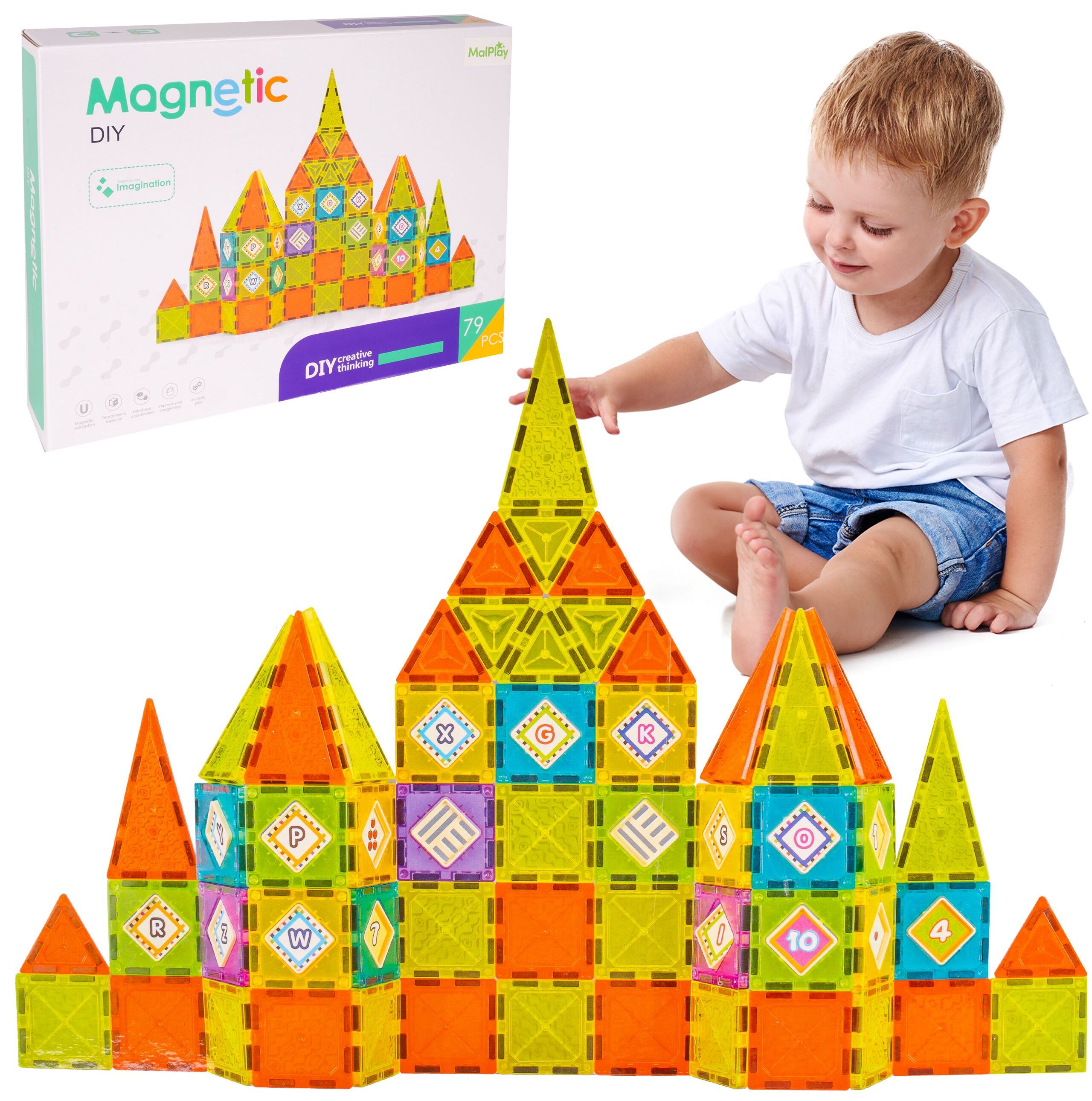 MAGNETICKÉ STAVEBNÍ BLOKY VZDĚLÁVACÍ HRAČKY PANELY PUZZLE 79 DÍLŮ