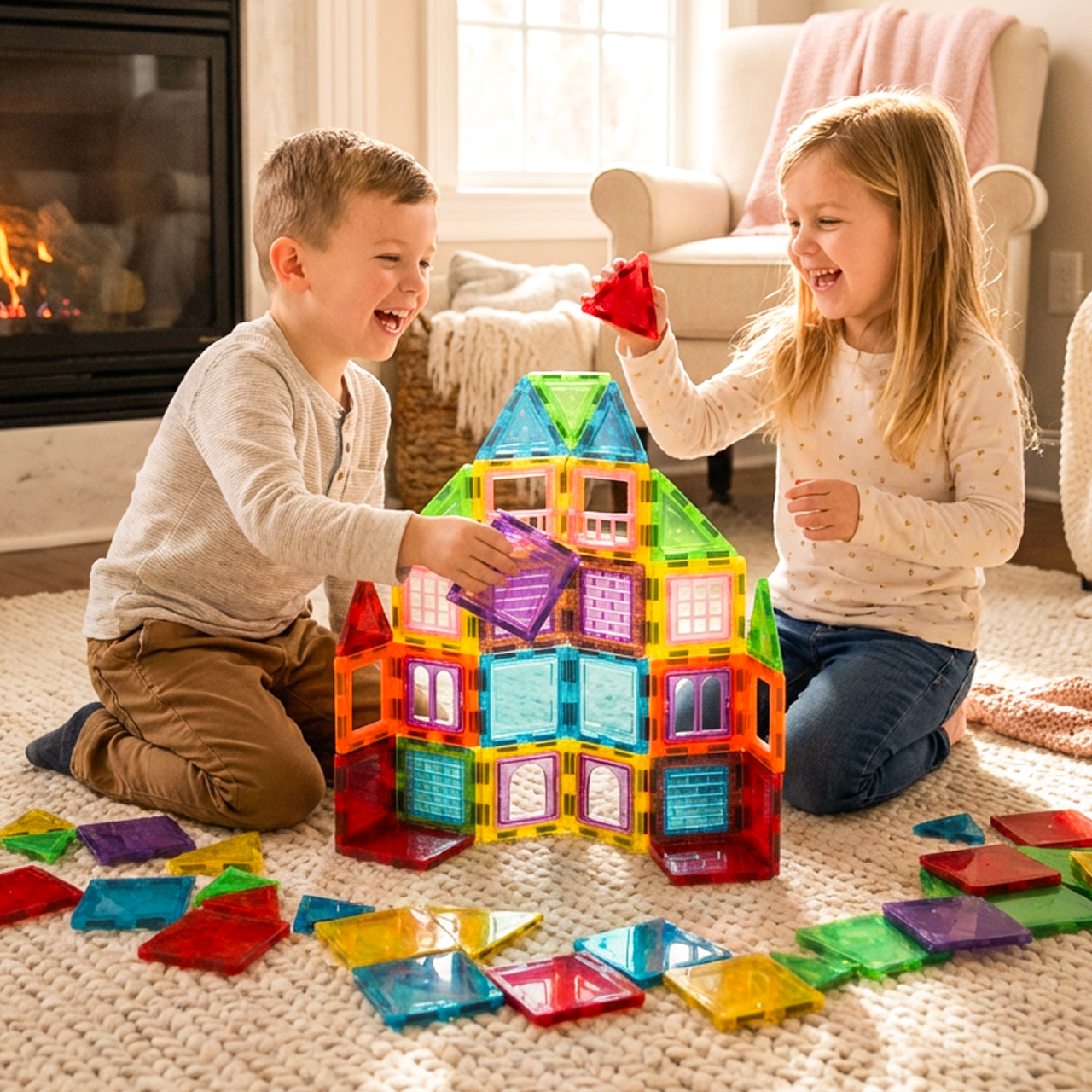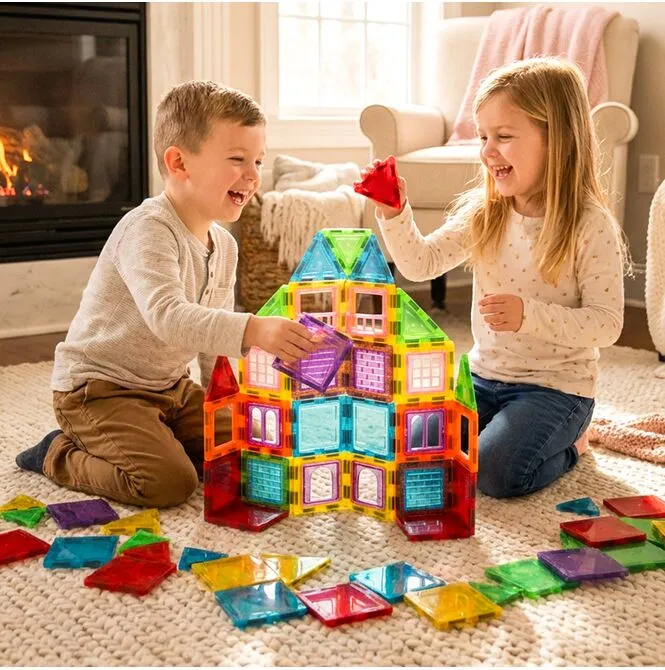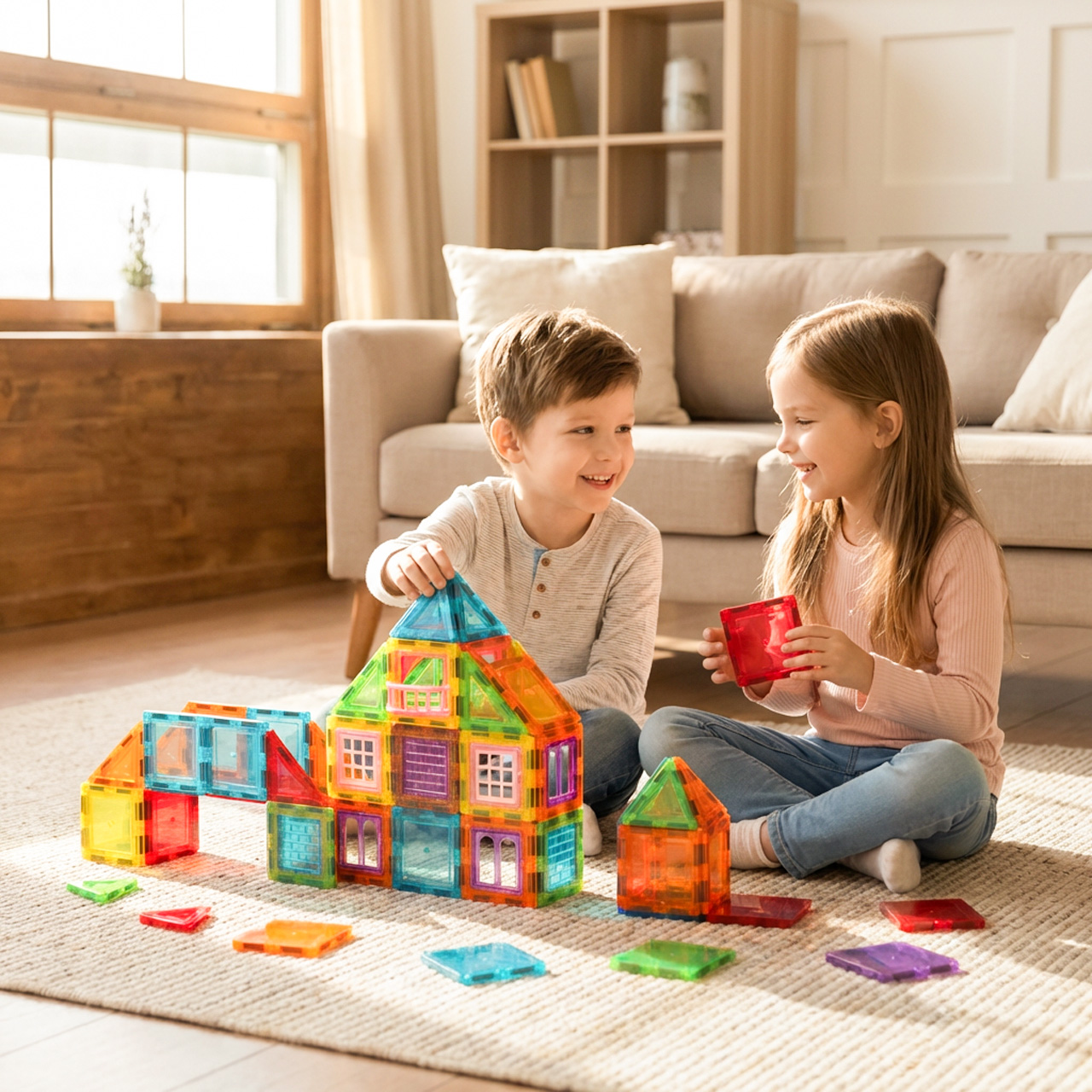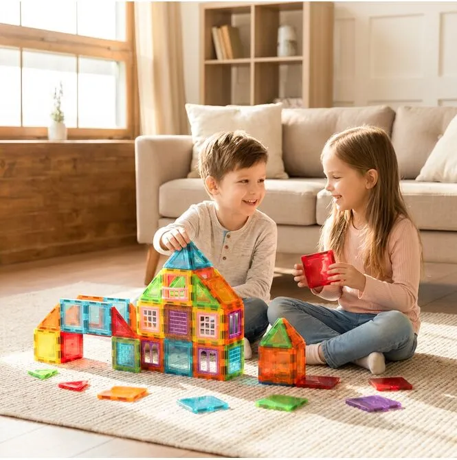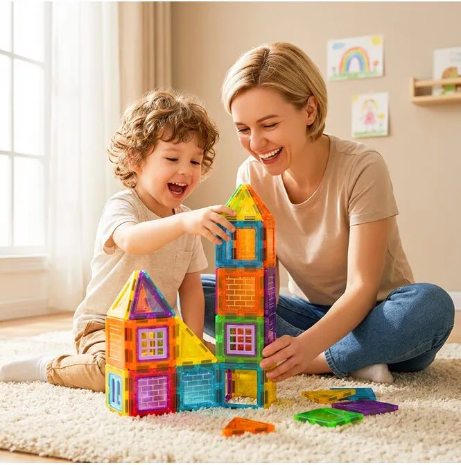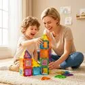 Hraní s magnetickými kostkami má neocenitelný a pozitivní dopad na vývoj každého dítěte. Sestavování, spojování a skládání magnetických kostek do kolejí, hadů nebo 3D tvarů poskytuje hodiny fascinující hry. Navíc stohování umožňuje rodičům a dětem trávit čas společně.