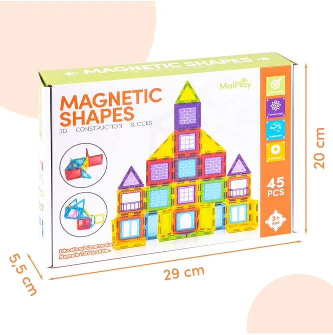 Magnetické stavební bloky Magnetické 3D puzzle 45 dílků