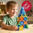 Nejsou to obyčejné kostky – průhledné, intenzivně barevné prvky na první pohled zaujmou a na světle vypadají ještě působivěji. Hotové stavby vypadají krásně, přitahují pozornost dítěte a vytvářejí okamžitý „wow“ efekt, který ho povzbuzuje k postavení dalších staveb.