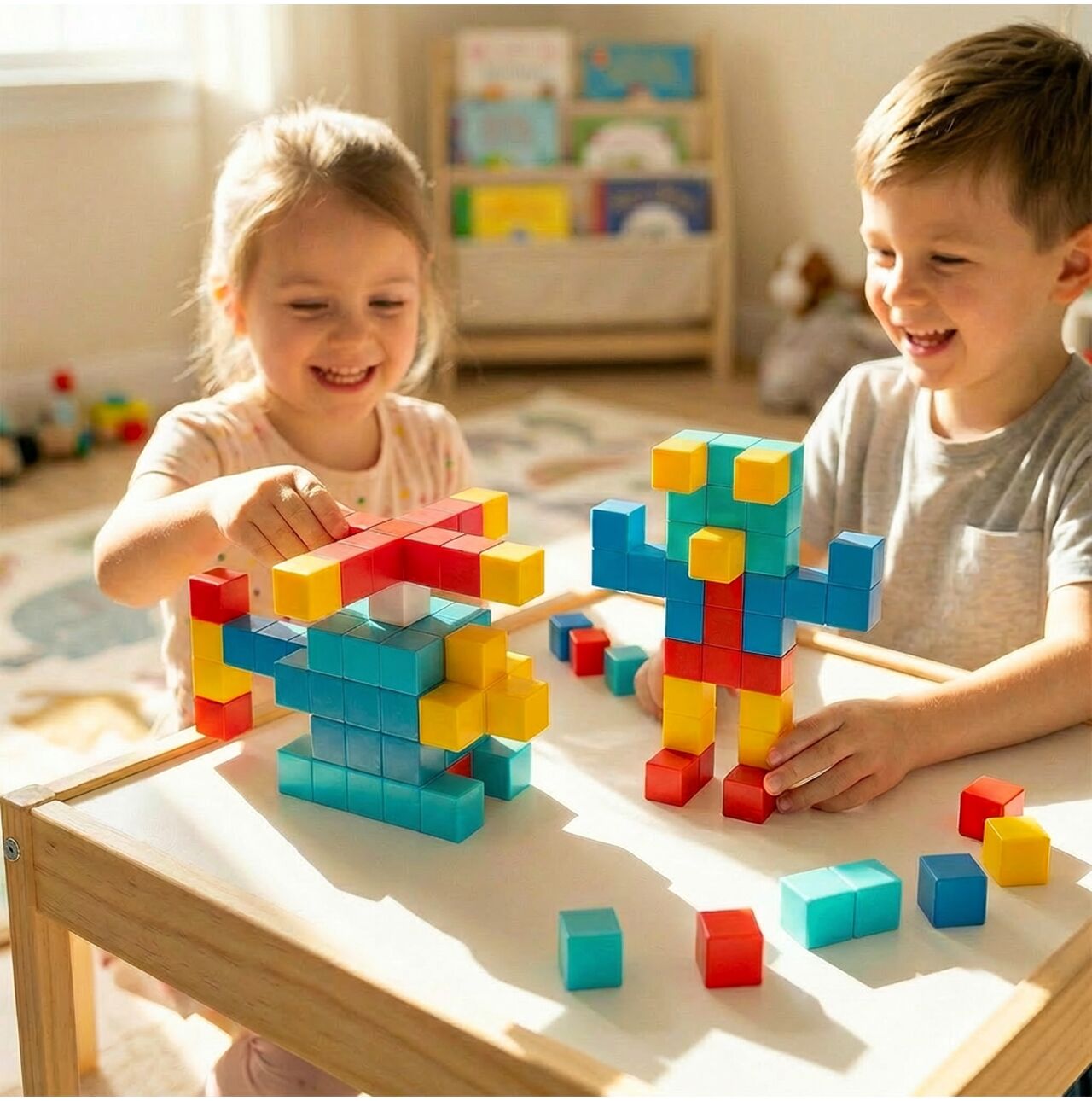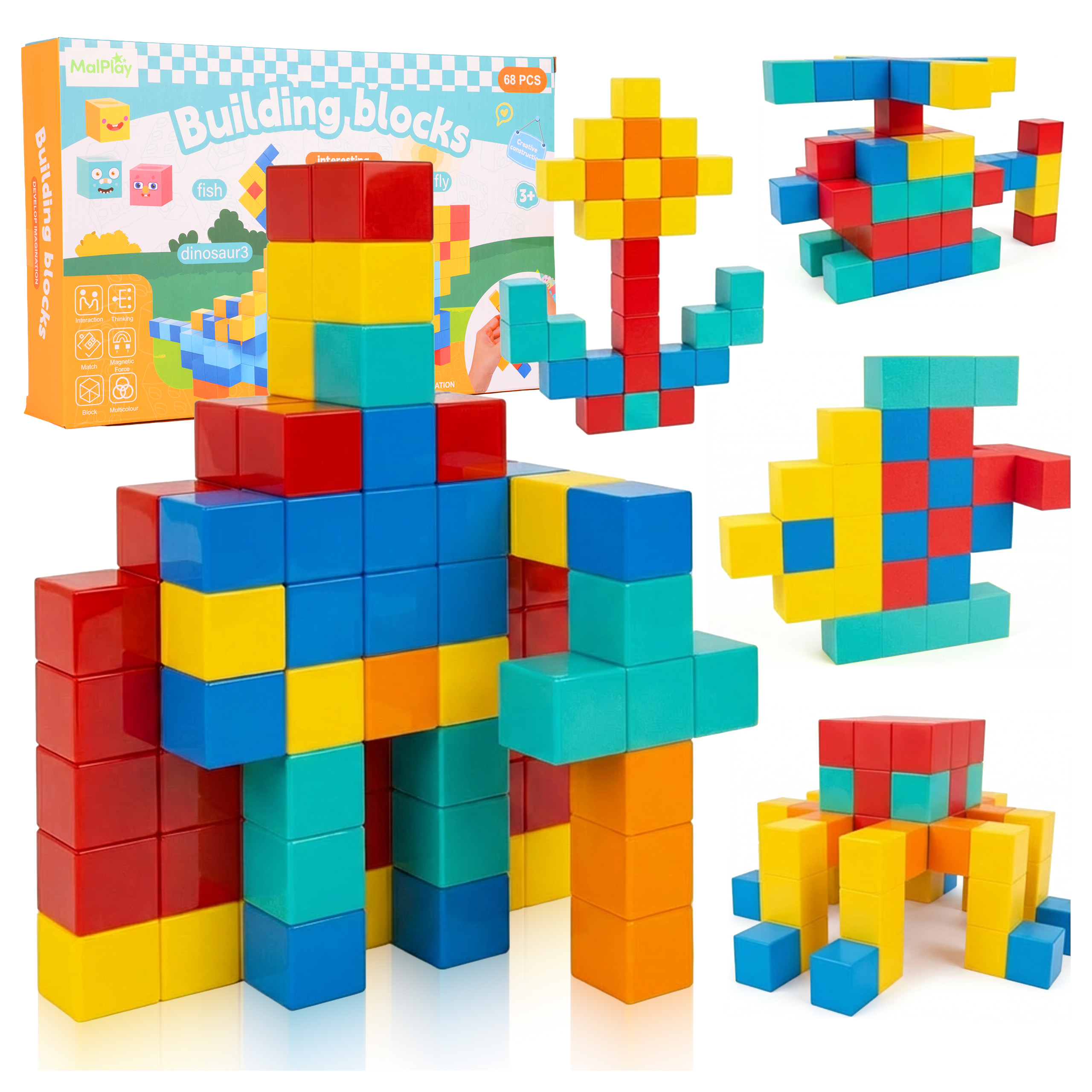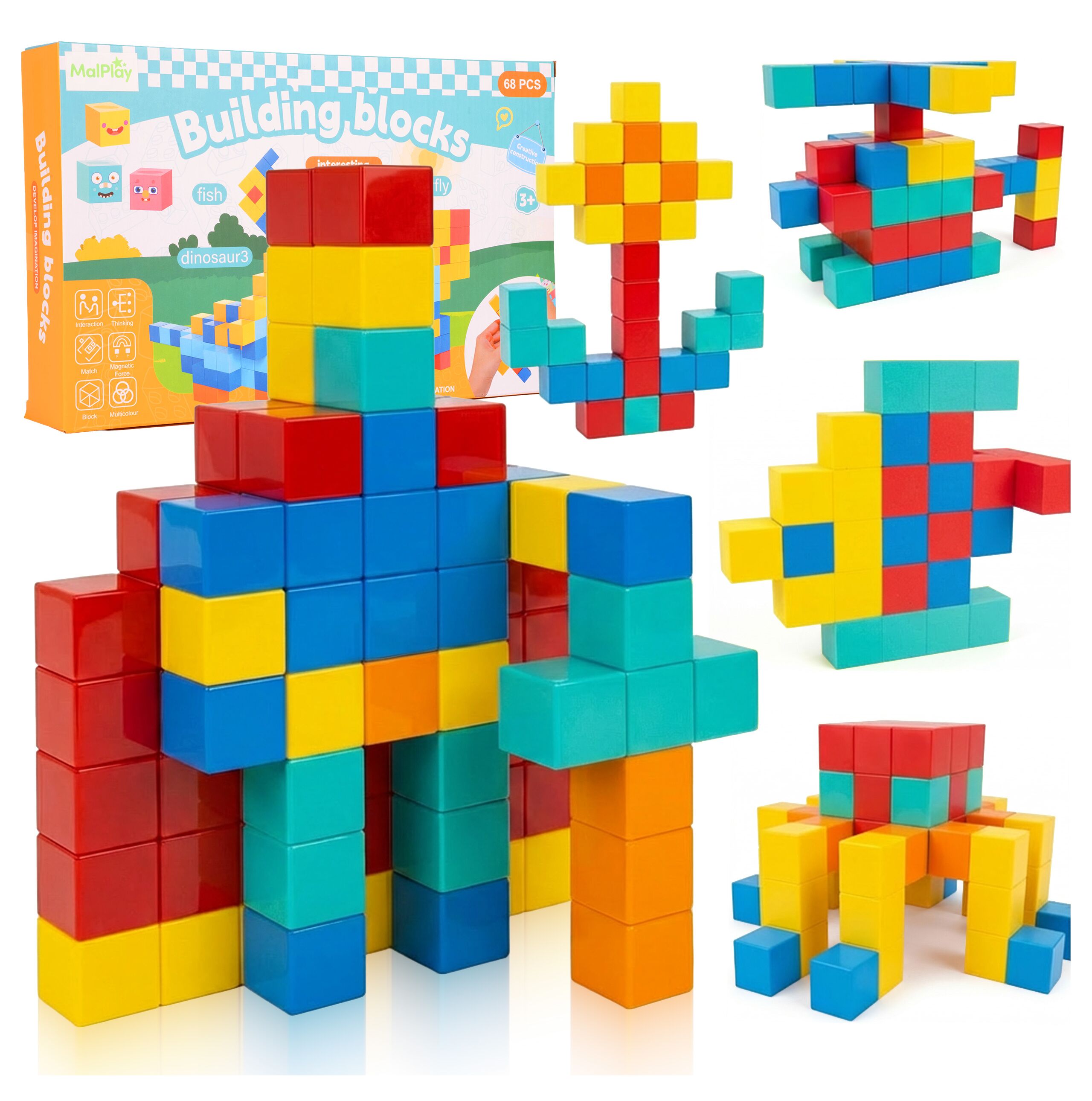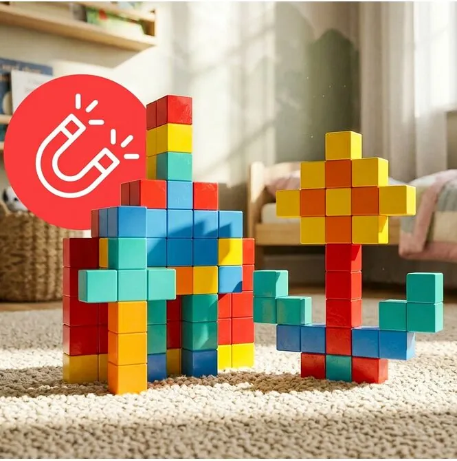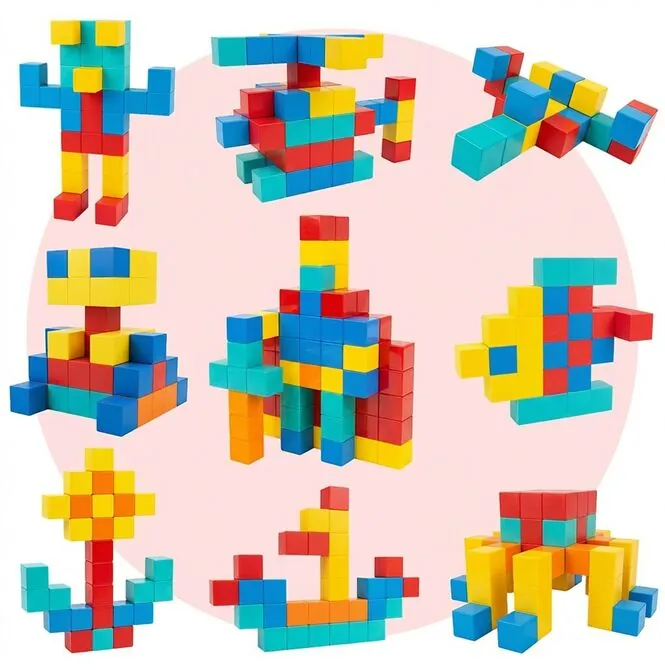 Největší síla této sady spočívá v tvaru samotných dílků. Jedná se o pevné magnetické kostky , které vytvářejí trojrozměrnější efekt než tradiční ploché dílky. Díky tomu vypadají stavby konkrétněji, hmatatelněji a pro děti ještě zábavněji. Lze je použít k vytvoření jednoduchých zdí, mostů, věží, figurek, zvířat a vozidel a hotové stavby jsou skutečně vizuálně přitažlivé a povzbuzují k další hře.