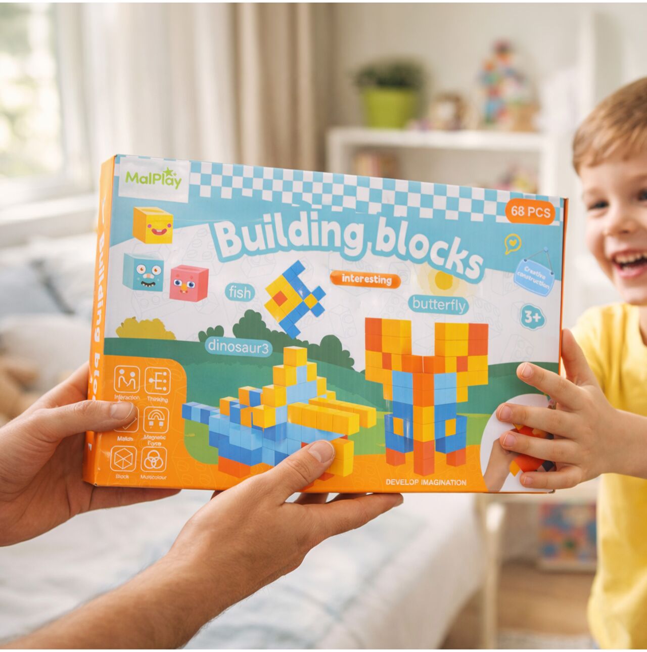 Tohle není stavebnice, u které po složení jedné věci nezůstanou žádné další kostky pro další nápady. 68 dílků dává vašemu dítěti svobodu tvořit a experimentovat s různými uspořádáními – od jednoduchých obrázků až po složitější 3D tvary. Můžete uspořádat vzory na podlaze, postavit vertikální struktury na stole nebo znovu vytvořit modely podle návodu.nebo si vytvořte zcela vlastní projekty. Právě tento uvolněný pocit a absence strnulého vzoru zabraňuje tomu, aby se hračka po jednom odpoledni nudila.