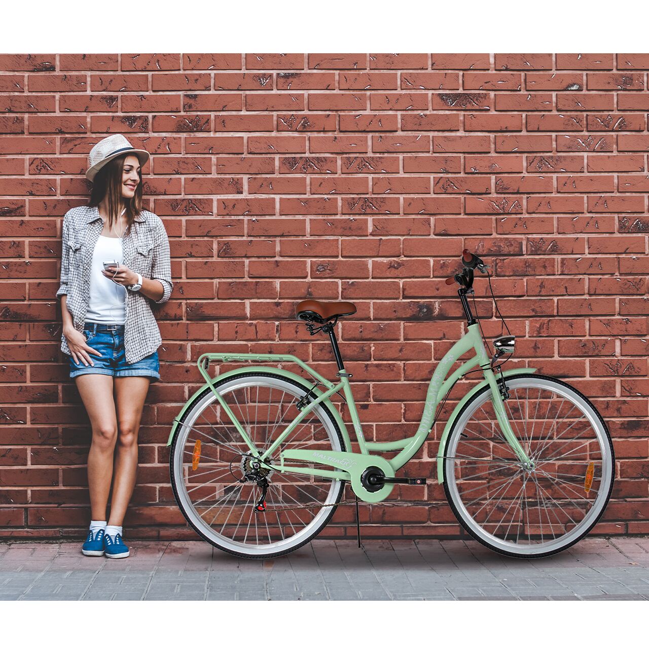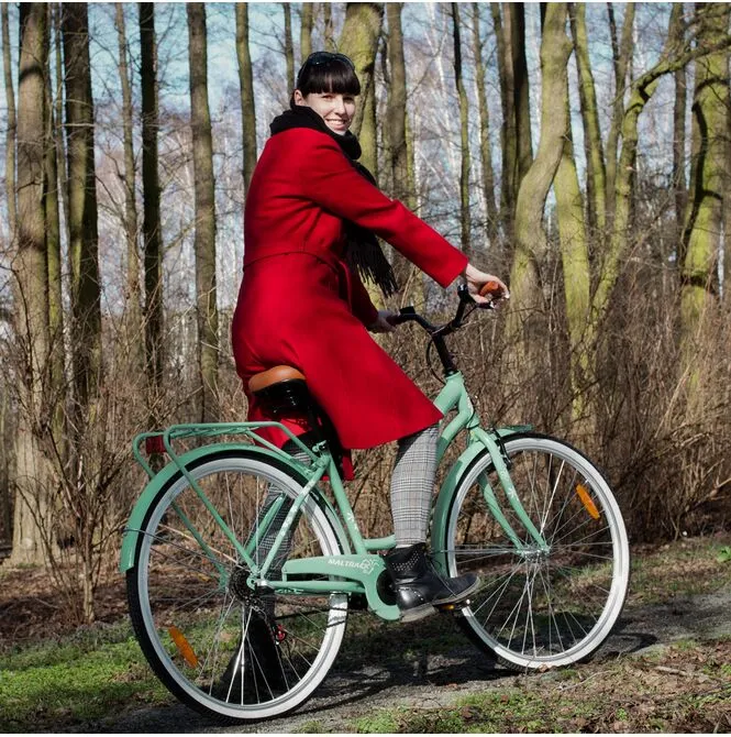 - Náš mestský bicykel je navrhnutý tak, že na pohodlnú jazdu nemusíte nosiť typickú športovú obuv alebo oblečenie. Takže si môžete obliecť šaty alebo sukňu a potom ísť na bicykel.