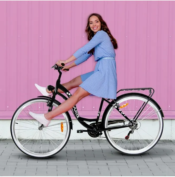 - Naše městské kolo je navrženo tak, že pro pohodlnou jízdu nemusíte nosit typickou sportovní obuv nebo oblečení. Můžete si tedy obléknout šaty nebo sukni a pak vyrazit na kolo.