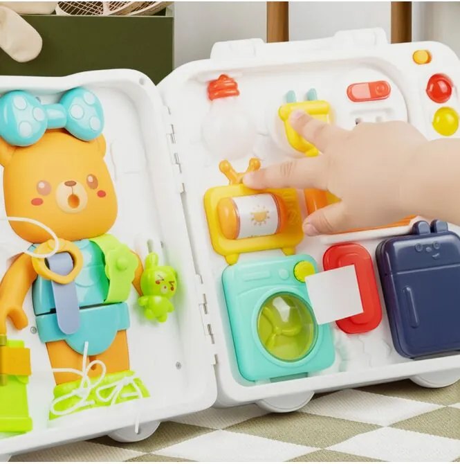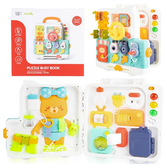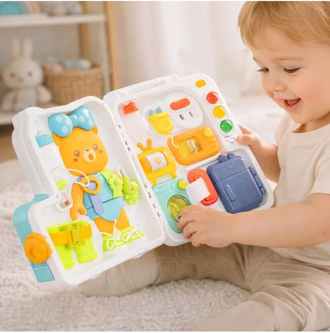 Manipulativní deska s plyšovým medvídkem, senzorický kufřík, vzdělávací, 18m+