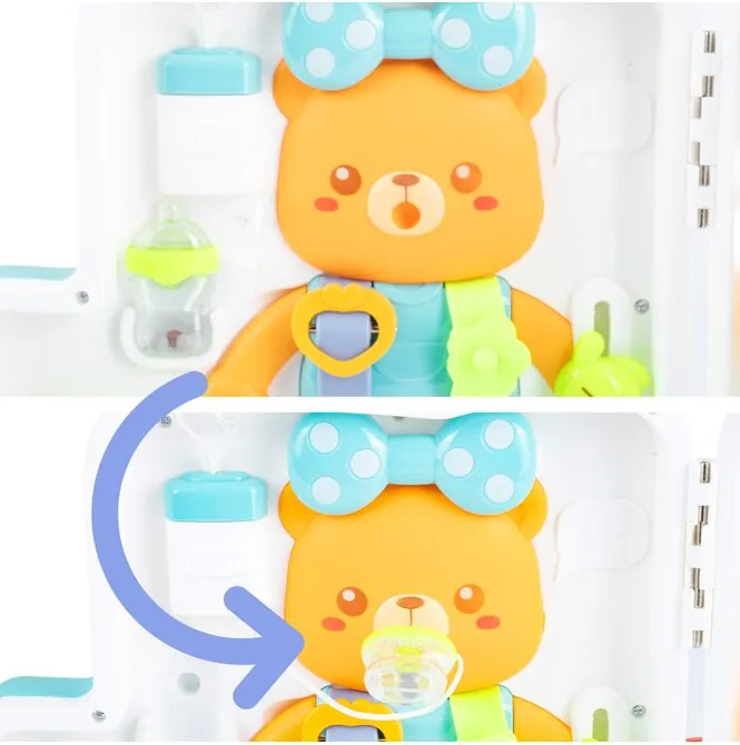 Medvídek se dodává s příslušenstvím pro hraní rolí z každodenních situací, jako je lahvička a dudlík na provázku . Děti si mohou procvičovat uchopení, přiřazování a provádění jednoduchých úkolů péče o sebe.