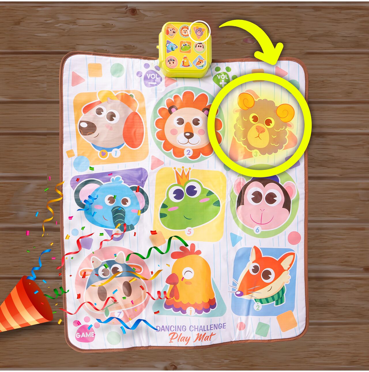 Panel sterujący podświetla ikony zwierząt, a dziecko ma za zadanie odnaleźć i nadepnąć właściwe pole na macie. To ćwiczy spostrzegawczość, refleks i zapamiętywanie sekwencji.