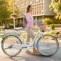 DÁMSKY MESTSKÝ BICYKEL 26" SVETLÁ OCEĽOVÝ RÁM 17" KOLESÁ 26" NOSIČ
