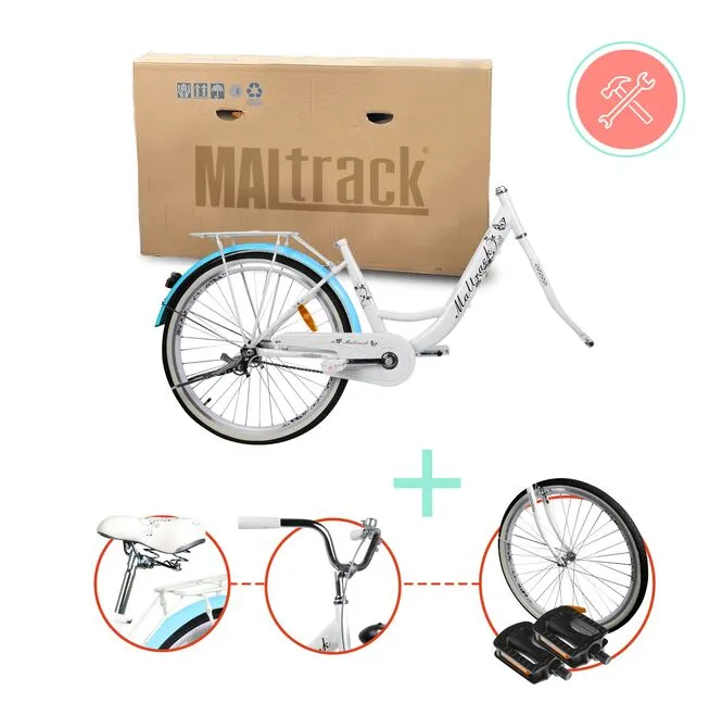 Bicykel je predmontovaný; stačí už len pripevniť riadidlá, predné koleso, pedále a sedlo. Po zostavení bicykla budete musieť vykonať všetky potrebné nastavenia.