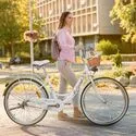 DÁMSKY MESTSKÝ BICYKEL 26" SVETLÁ OCEĽOVÝ RÁM 17" KOLESÁ 26" NOSIČ