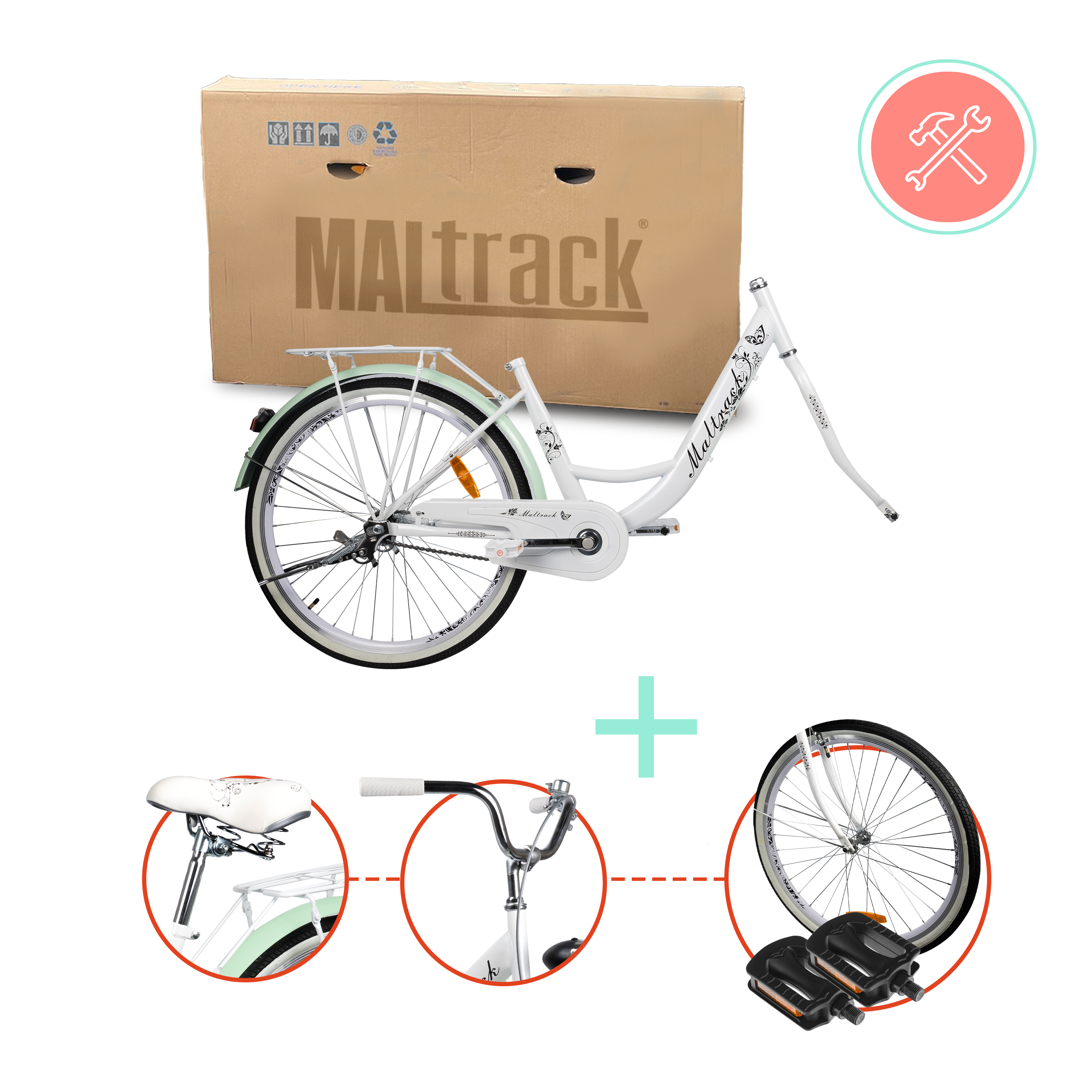 Bicykel je predmontovaný; stačí už len pripevniť riadidlá, predné koleso, pedále a sedlo. Po zostavení bicykla budete musieť vykonať všetky potrebné nastavenia.