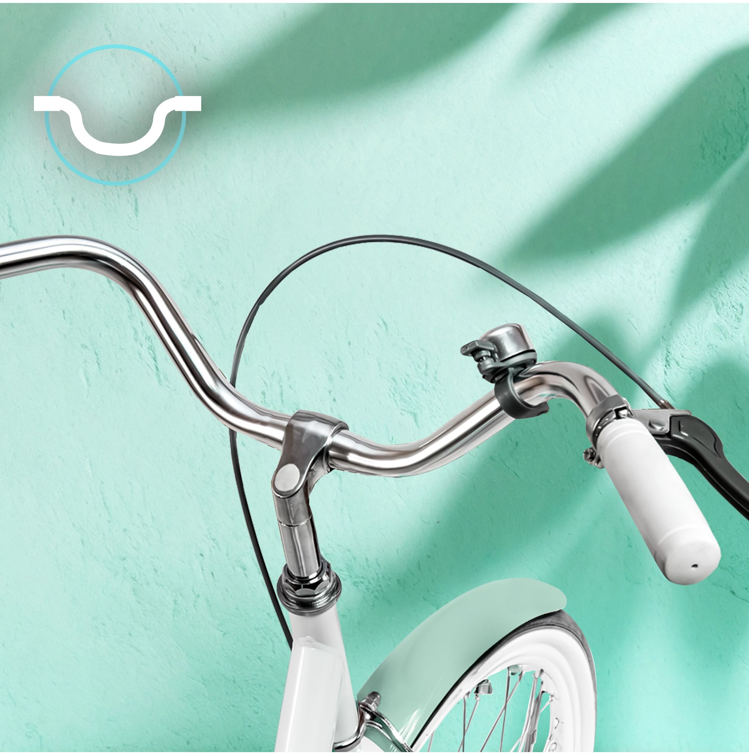 Veľmi pohodlné, vzpriamené riadidlá pre mestské bicykle . Vďaka vhodnému profilu vám ruky počas jazdy pohodlne spočívajú na riadidlách. Sú pohodlné, ergonomické a vzpriamené.