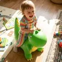 - velký nafukovací skákající dinosaurus , který dítě okamžitě povzbuzuje k pohybu a aktivní hře