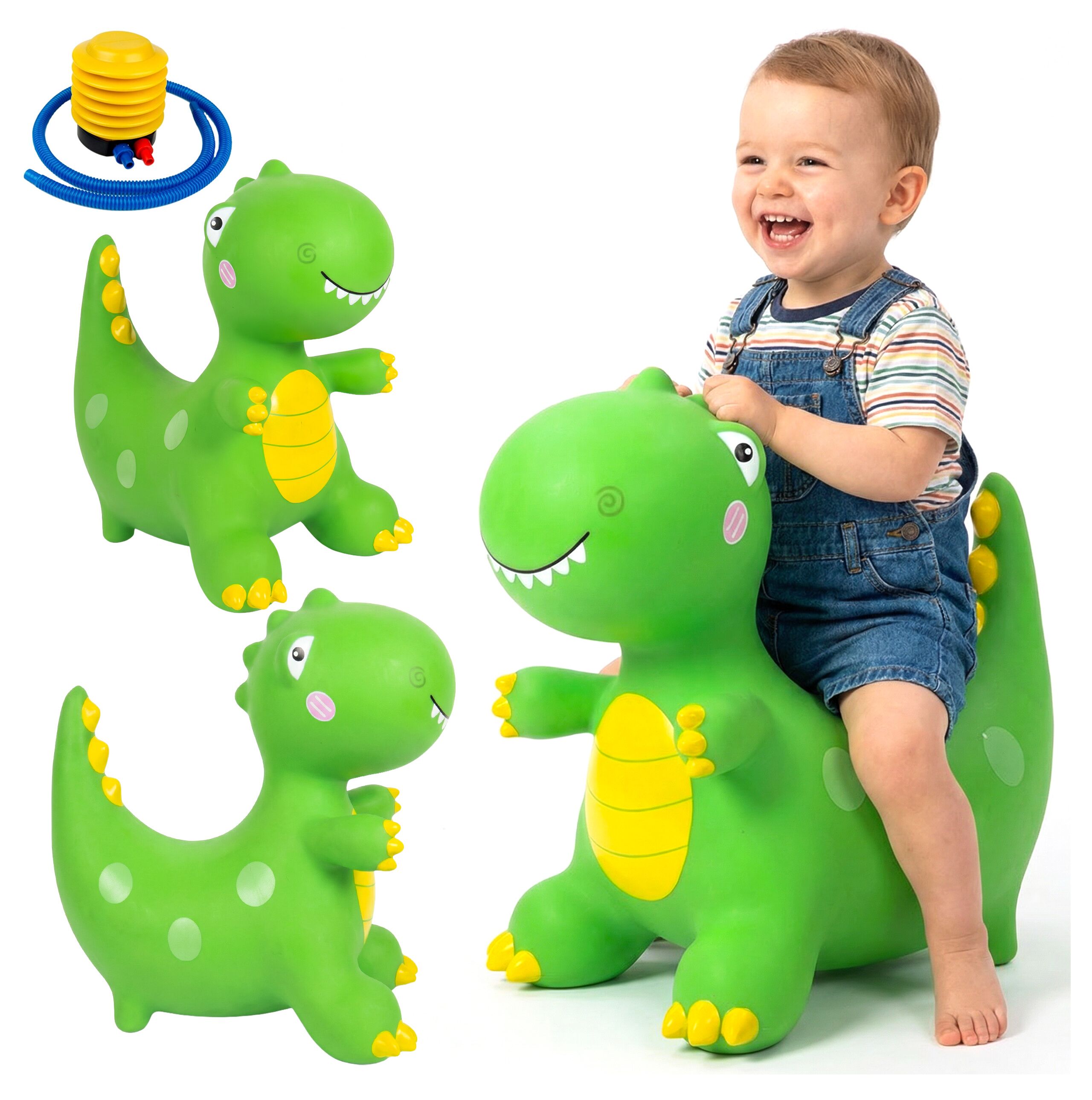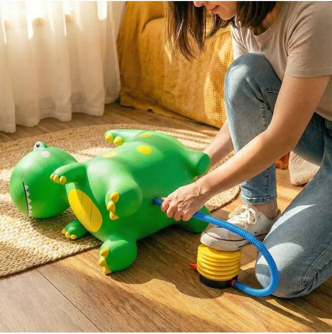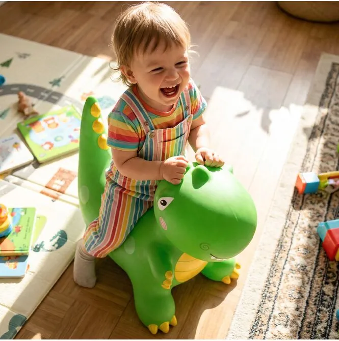 Dinosaurus je navržen tak, aby děti mohly pohodlně sedět a bezpečně se ho držet při hraní. Přední tlapky pomáhají poskytovat bezpečnou oporu pro ruce při hraní.skákání a odrážení. Vhodný tvar celé hračky znamená, že dítě rychle získá sebevědomí a bude se s nadšením vracet na další jízdy.