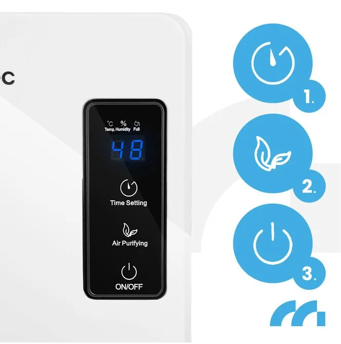 Odvlhčovač pomocou príslušného LED indikátora signalizuje potrebu vyprázdnenia nádrže a zastaví prevádzku, aby zabránil pretečeniu vody.