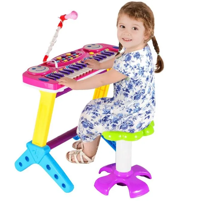 Zestaw do gry na organach elektronicznych z 37 klawiszami to wyjątkowa muzyczna zabawka instrumentalna. Dzięki kolorom i uroczemu wzornictwu z pewnością przyciągnie wzrok Twojego dziecka.