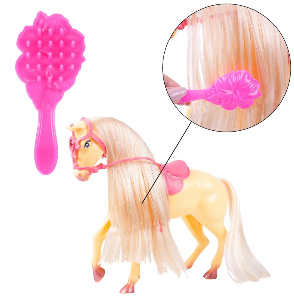 Kůň je vyroben z materiálu příjemného na dotek. Má dlouhou, bujnou hřívu a ocas, který sahá až k zemi. Sada obsahuje i růžový kartáč na rozčesávání.