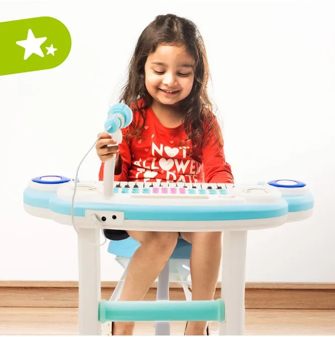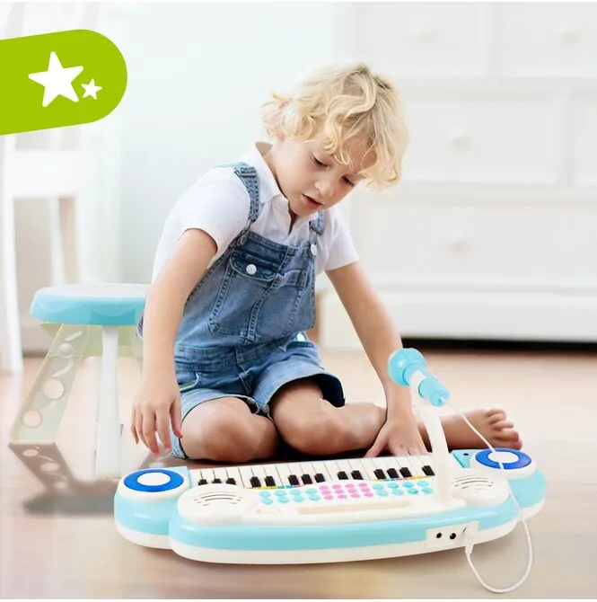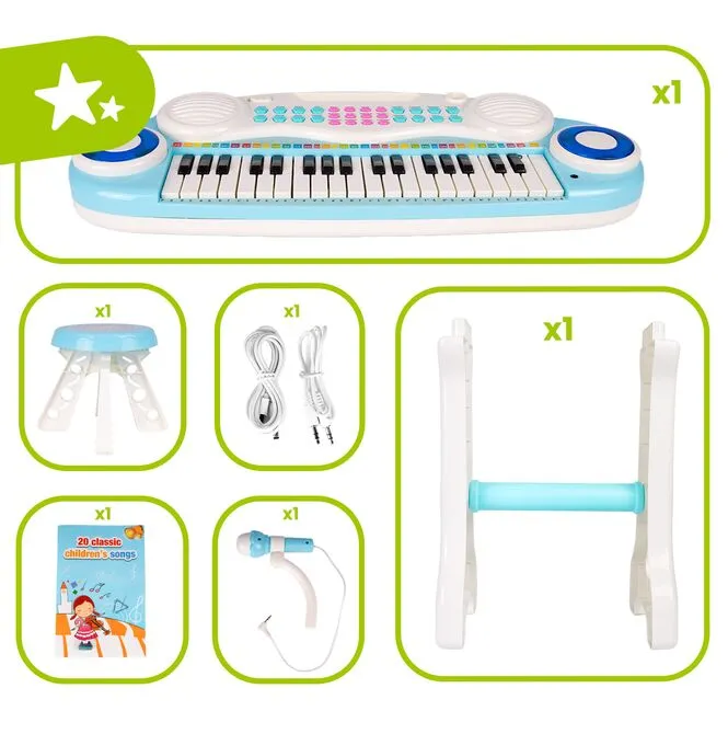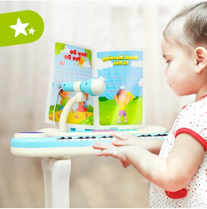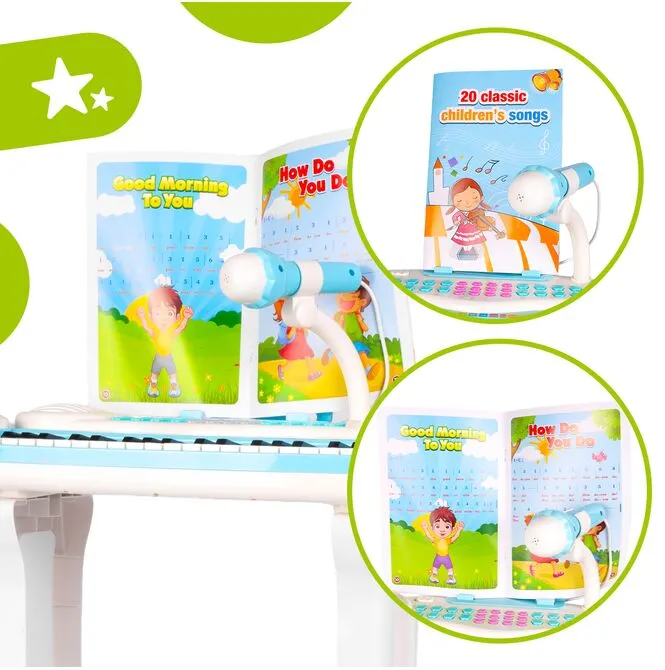 PIANINKO DLA DZIECI EDUKACYJNE INTERAKTYWNE MIKROFON TABORET PIOSENKI