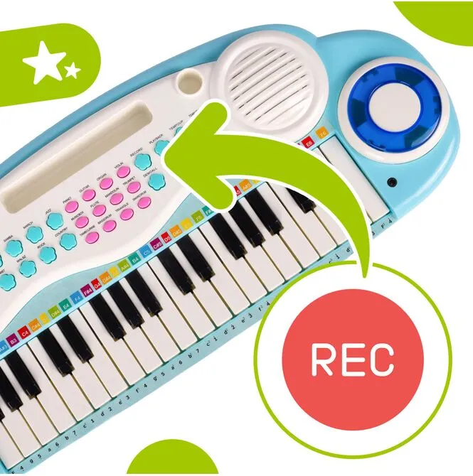 Pianinko uczy poprzez działanie: dziecko ćwiczy koordynację ręka-oko, słuch wysokościowy, poczucie rytmu i pamięć muzyczną. Nagrywanie własnych pomysłów wzmacnia kreatywność i pewność siebie, a wspólne śpiewanie do mikrofonu rozwija mowę i dykcję. Dzięki regulacji tempa i oznaczeniom dźwięków maluch łatwiej uczy się pierwszych melodii i literatury dziecięcej.