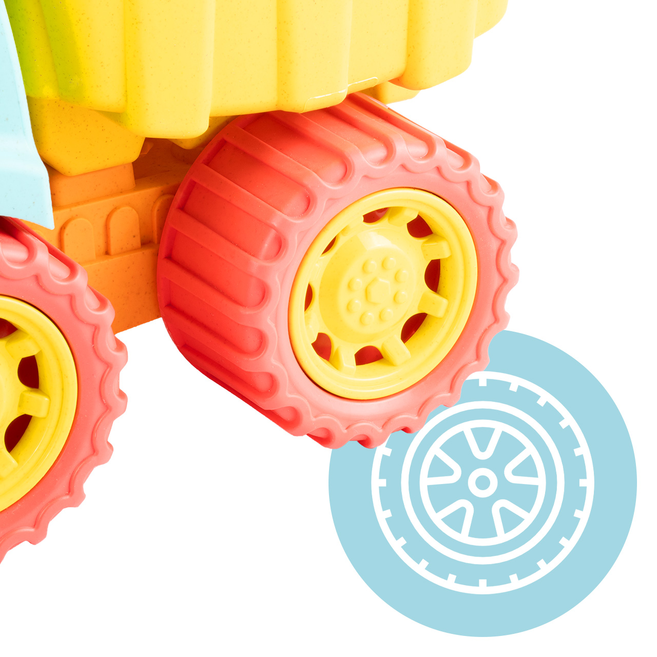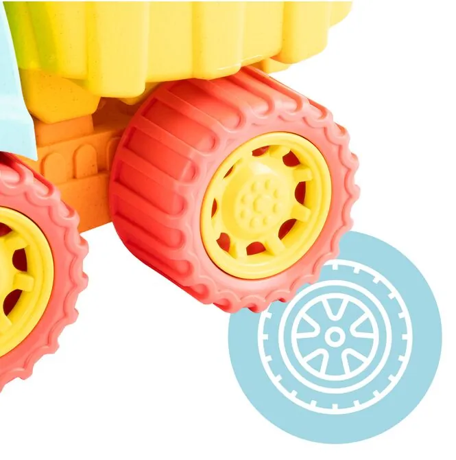Sklápěč je vybaven velkými, širokými koly , která jsou ideální pro každodenní hraní. Vozidlo se snadno manévruje po písku, trávě, dlažebních kostkách nebo podlahách domu a jeho robustní konstrukce zvyšuje pohodlí.