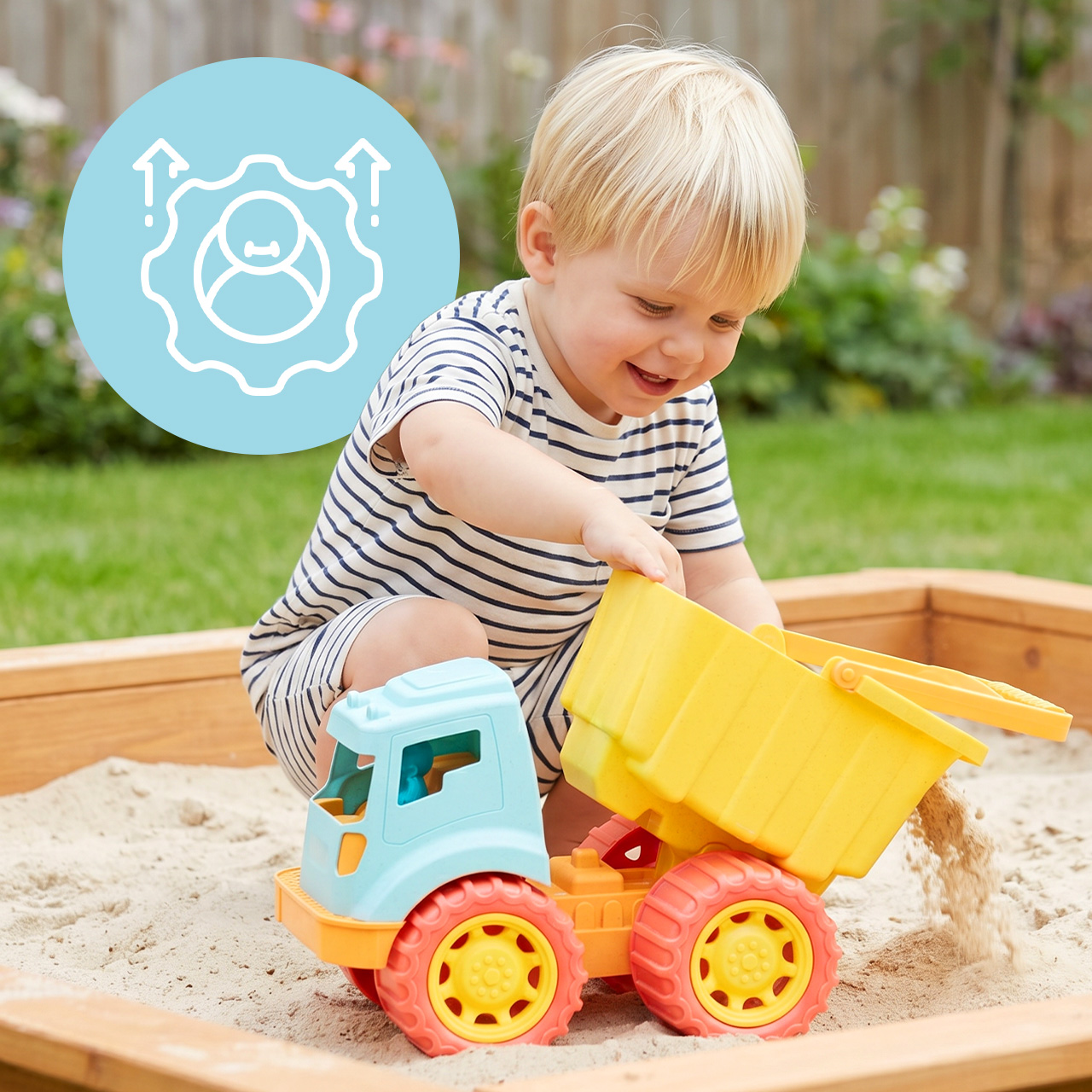 Hraní si s nákladním autem podporuje rozvoj dítěte tím, že mu pomáhá procvičovat motorickou koordinaci, úchop, plánování pohybu a kreativitu . Spojuje zábavu s přirozeným rozvojem každodenních dovedností.