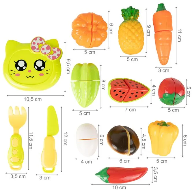 Sada zeleniny a ovocia na krájanie je zábavný nápad pre deti, ktoré rady pomáhajú v kuchyni. Deti rady pomáhajú rodičom pri príprave jedál, niekedy netušíme, čo dať dieťaťu na hranie, aby sa bezpečne hralo na varenie.